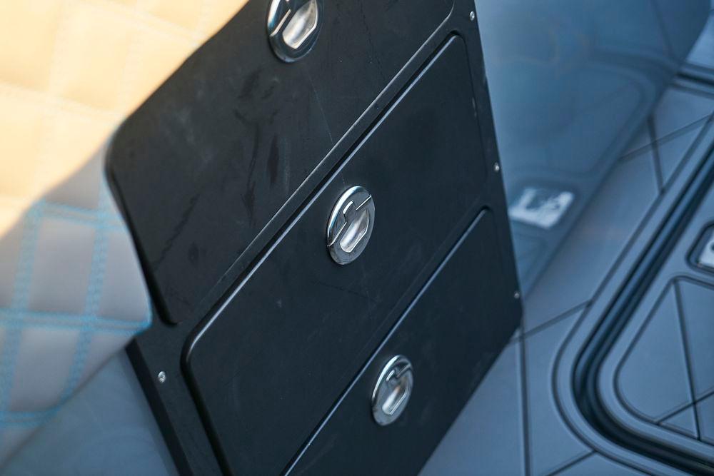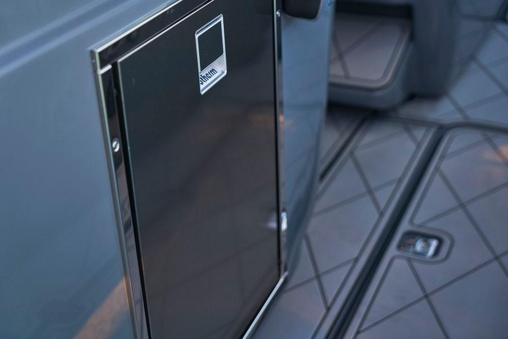 - -Oversized stand up console interior with fresh water toilet, sink and berth area