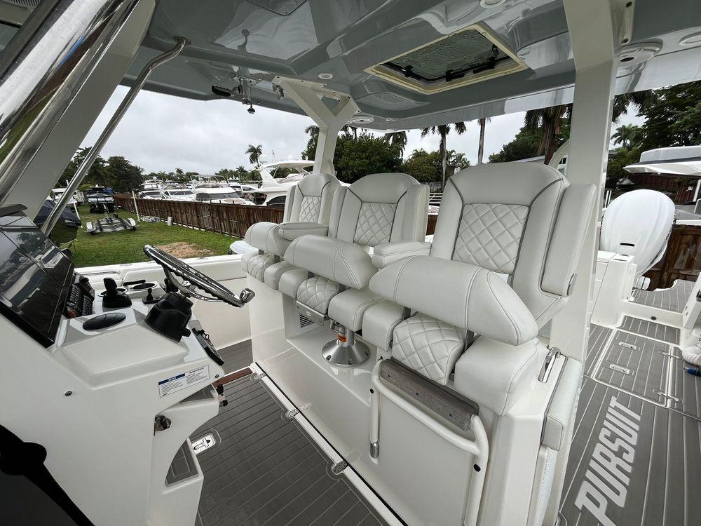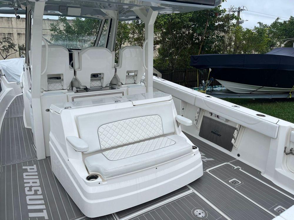 The 2021 37' Pursuit S378 Sport Yacht seamlessly blends cutting-edge innovations with the renowned qualities of fishability and versatility. From a generous cockpit, perfect for a full day of fishing, to a groundbreaking patent-pending entertainment center that effortlessly moves into place at the touch of a button, this yacht offers uncompromised functionality. The adjustable helm, featuring enhanced ergonomics, provides a commanding view and the thrill of triple Yamaha® 425 engines, delivering both power and maneuverability. The multi-function forward lounge seating and panoramic views from hull side and cabin side windows make this yacht a coveted choice for entertaining guests. Step aboard and discover a whole new perspective on the distinctive lifestyle that life on the water can offer.