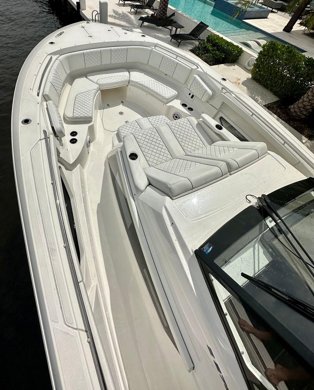This like new 2022 Pursuit S378 presents an opportunity to buy an almost new boat at a used boat price. The owners change of plans have led him to sell this super low hour (58 hours) lift kept Pursuit. She is totally loaded with options such as, Seakeaper, Yamaha docking joystick, diesel generator. electric cockpit entertainment / cook center, never used isinglass helm enclosure just to name a few. The cabin has never been slept or cooked in. She is ready for her new owner.