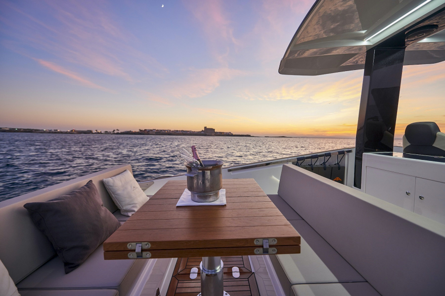 Astondoa proves the versatility of its customization with its model from the exclusive “Coupe” yacht cruiser line, the 377 Coupe Outboard. With the success of the initial 655 Coupe, clients looked for a more compact version for day jaunts, yet Astondoa delivered a sporty boat with yacht-like amenities.