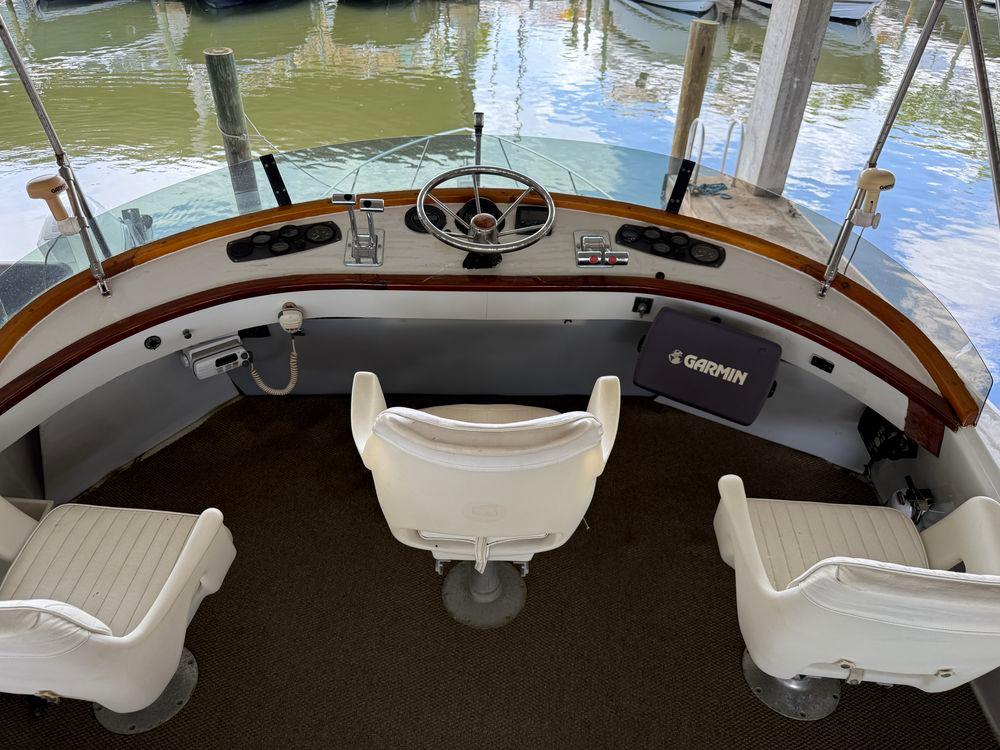 A piece of craftsmanship that is lasting until today where she sits in Dania beach ready for her new owner to see her for what she really is. Everything is thought out perfectly and is functional! Not many boats of today are made that way. This 38 custom was originally powered by twin Mercury 300hp two stroke outboards where it was eventually re-powered with Mercruiser inboard engines and then repowered again with the current engines.