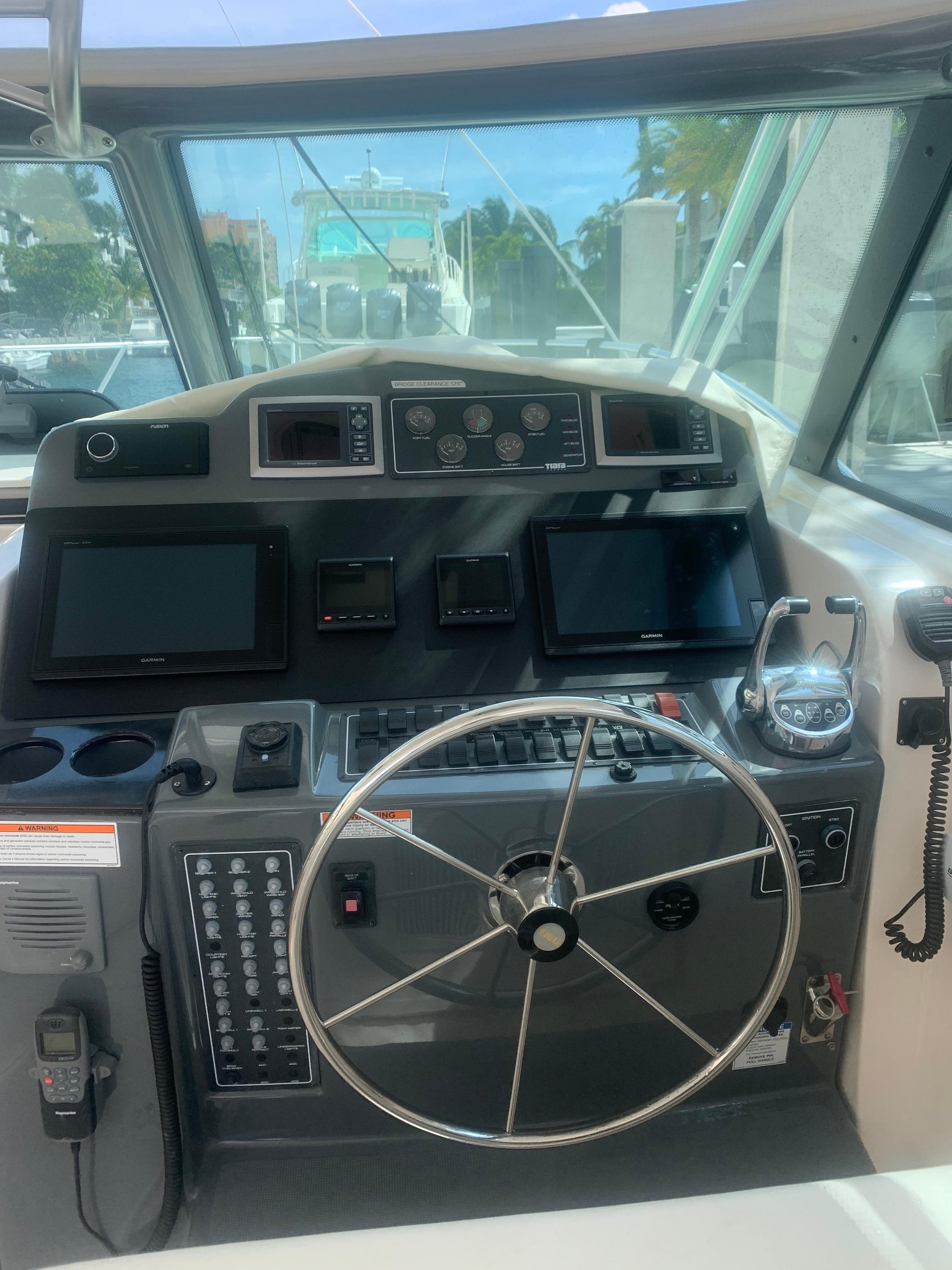 kt cruise. The helm is lined with new Garmin electronics, stereo system, underwater lights, helm air, amongst many other features.