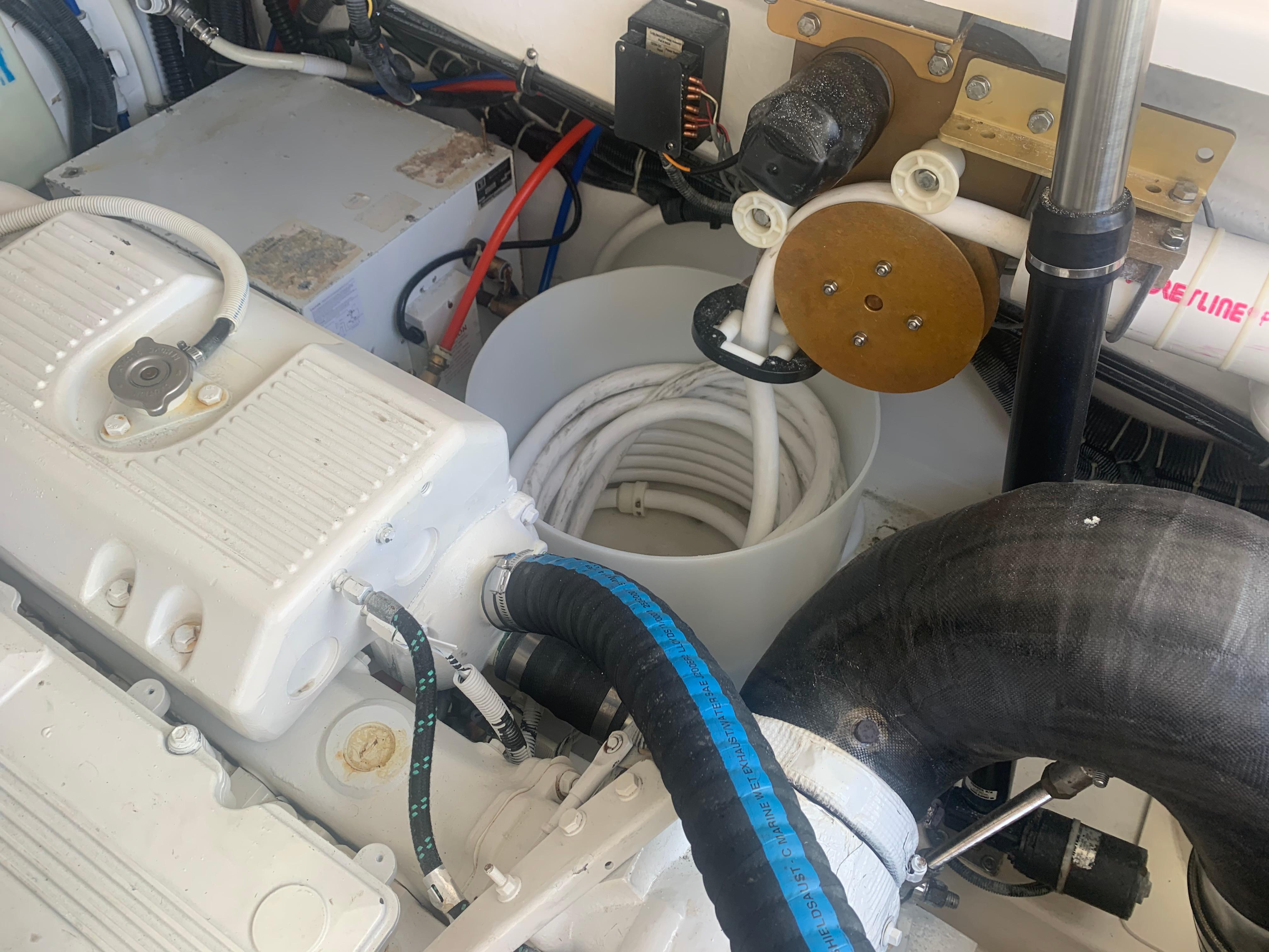 in few other boats. The entire helm deck lifts mechanically for easy access to the large engine room. Additional features