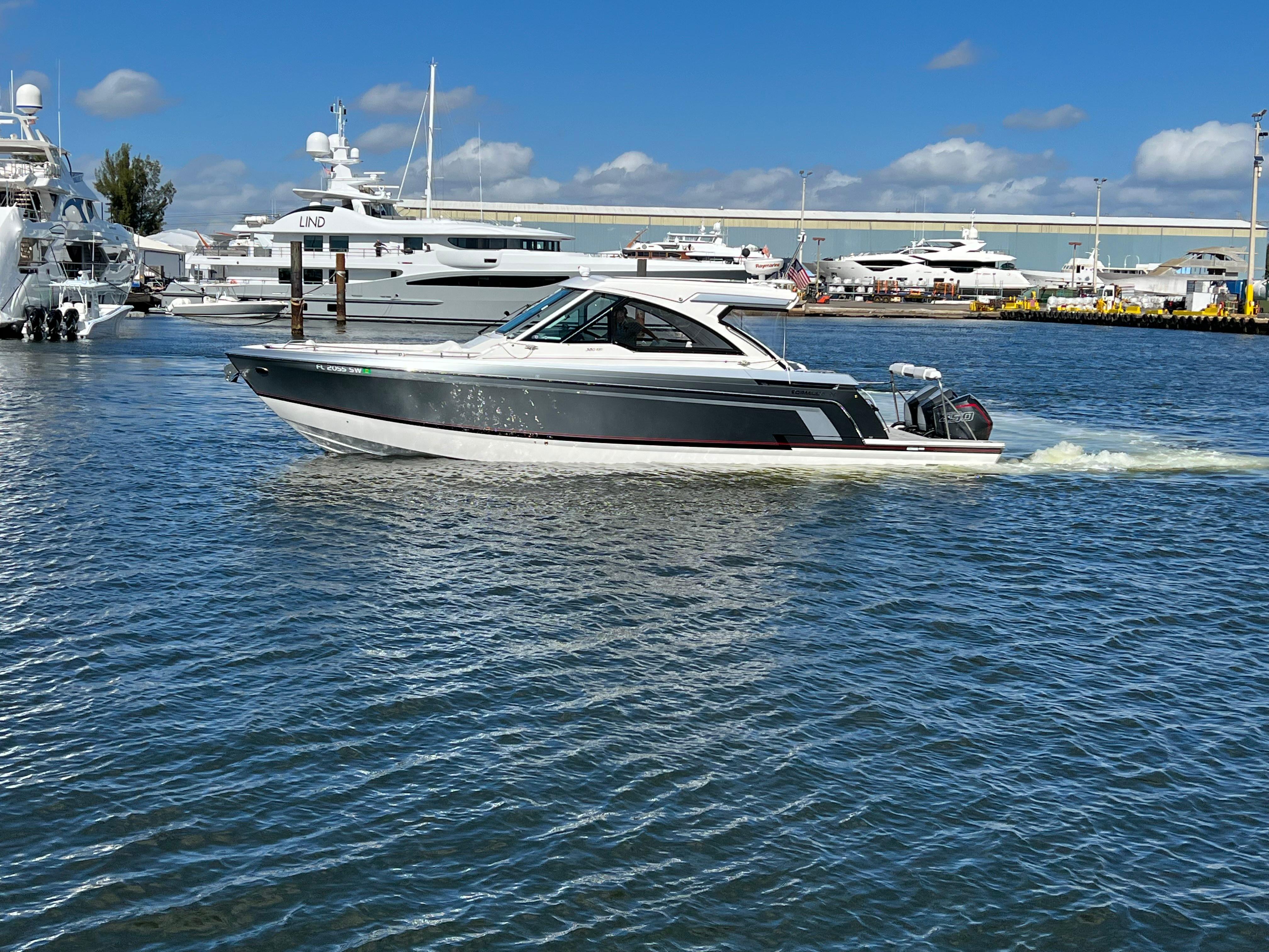 why I headed back to the same dock at the same North Miami marina where I tested the sterndrive 380 last year—to sea-trial the new