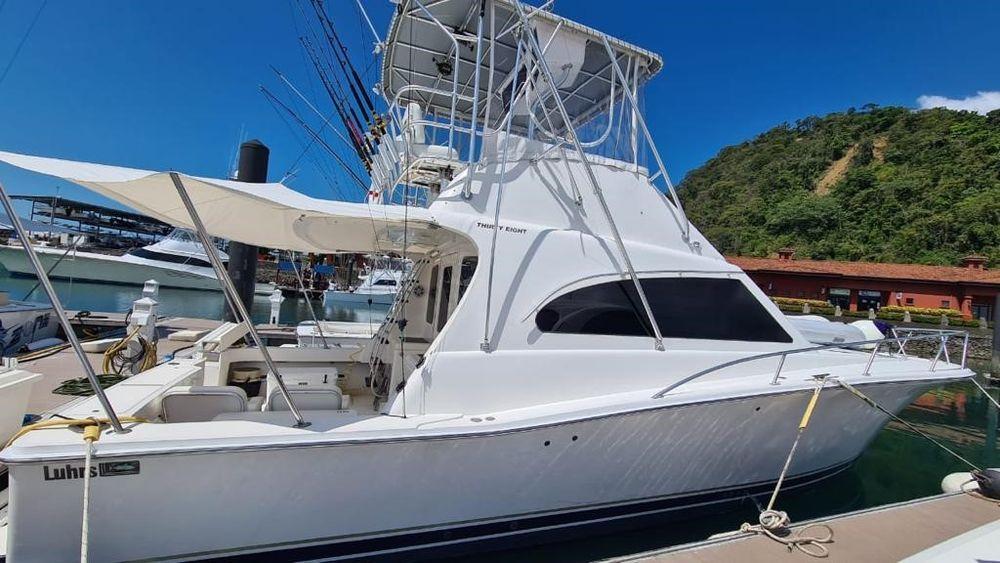 Clean lines and classic looks, the Luhrs 38 is as strong as it is good looking. Carolina flare and a wide beam assure you of a dry, comfortable and stable ride in those offshore swells or that nasty chop. The command bridge offers plenty of electronics space, lots of seating and plenty of storage. Even a portable cooler is standard to eliminate those trips to the galley. A sturdy half-tower with mounting pads for the radar and antennas is usually an expensive option on most boats, but standard on Luhrs. Other incredible standards include reverse-cycle air conditioning/heat plus an 8KW diesel generator. Fishing features are not to be forgotten and tackle drawers, livewell, dual washdowns, sink and fishboxes are all included as standard.