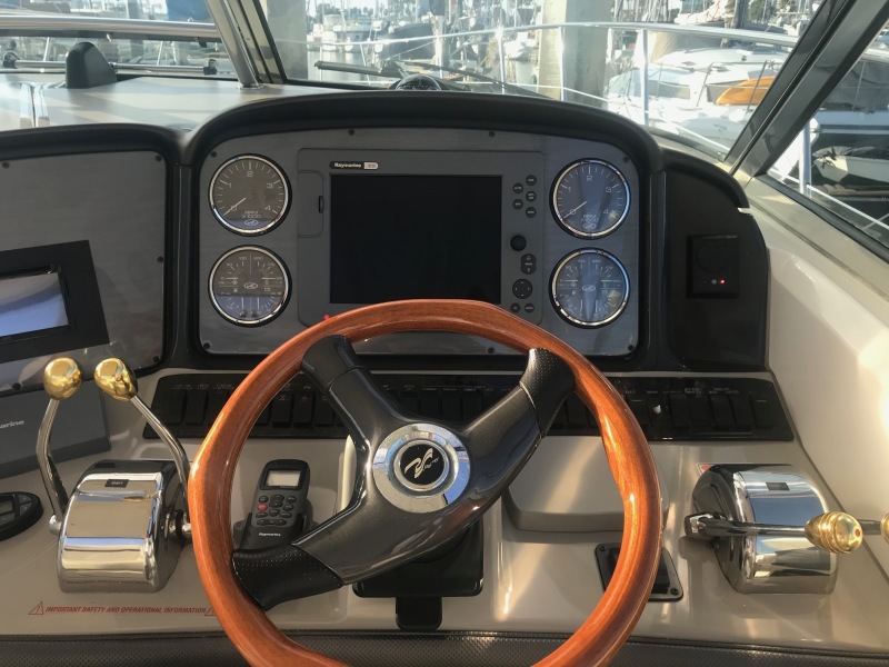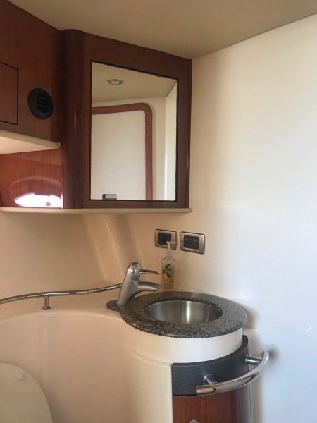 Pride of ownership shows throughout the vessel. A head turning express with a private master stateroom and a spacious mid cabin with an ultra leather settee that converts to a double birth with privacy curtain. Powered with Twin Cummins Diesels at 380 Hp each with 300 hours! Premium accommodations, fully equipped galley and lots of storage - the perfect weekend getaway! Turn key and ready to cruise! Beautiful Inside and Out!