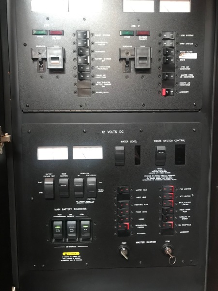 - TV, 20" Flatscreen LCD, Flip Down, (120V) w/Remote DVD Player, Coax Outlet & Gain Control Panel