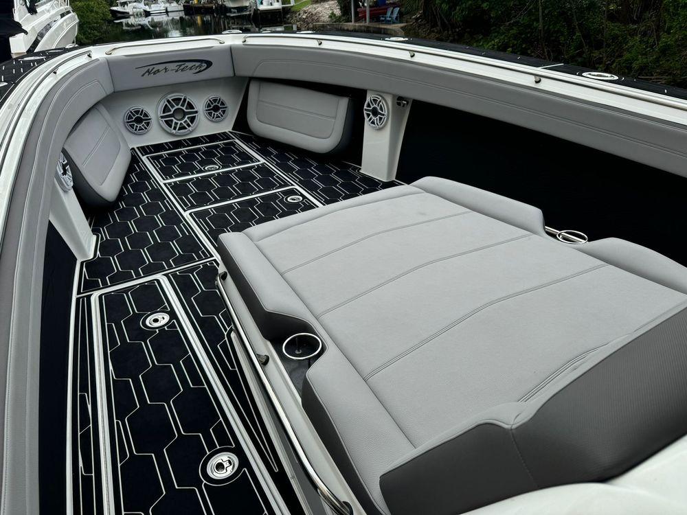 This amazing 2024 Nortech 392 Super Fish is powered by quad Mercury 400R V-10s, with only 182 hours on the engines. This boat has been meticulously maintained, kept in indoor dry storage, and all engines are up to date on maintenance. Equipped with advanced electronics and a top-tier sound system, this vessel is ready for any adventure. Fully loaded with extras and designed for serious anglers, this Nortech 392 offers both performance and luxury. Don’t miss out on this high-performance machine!
