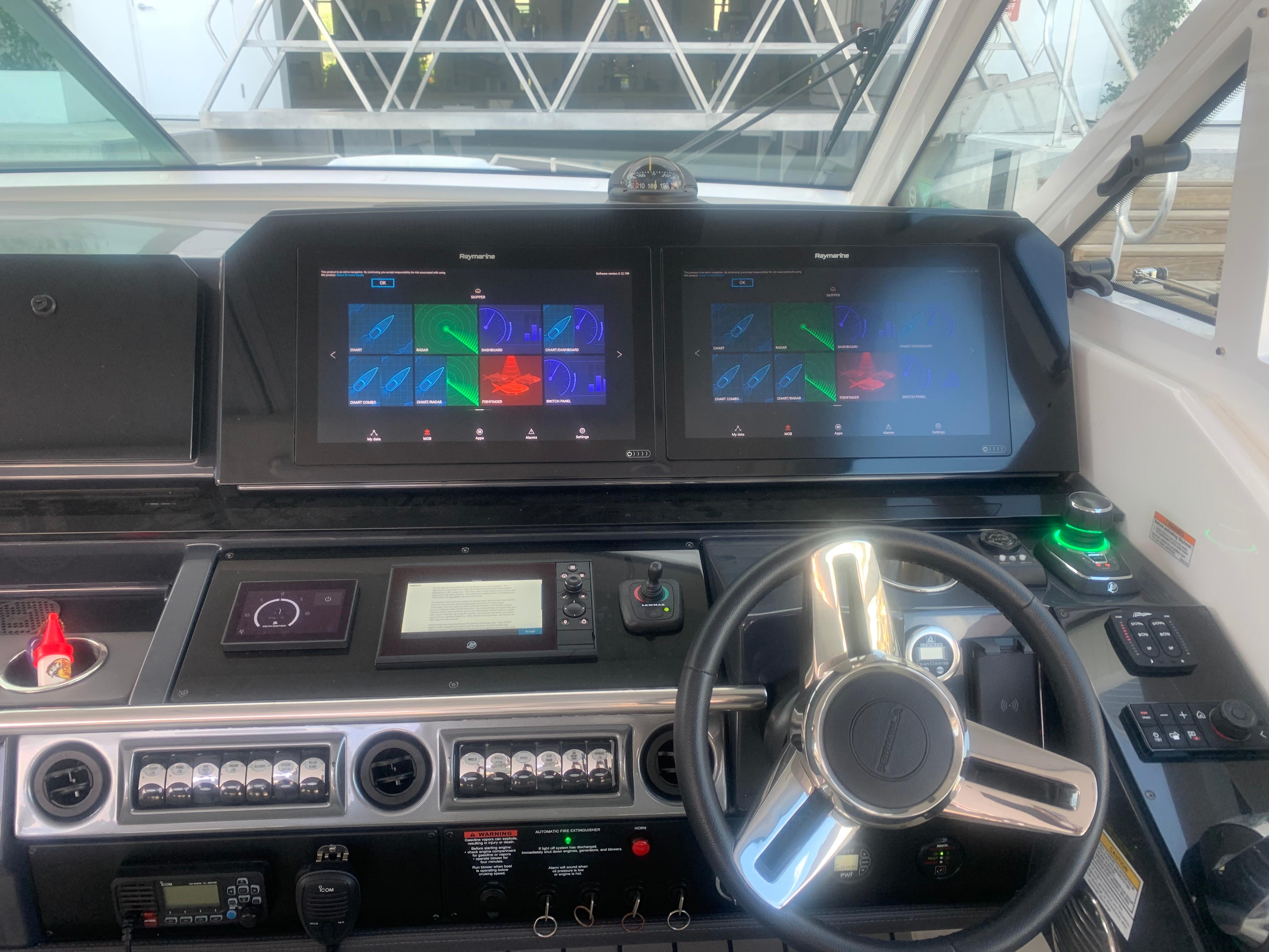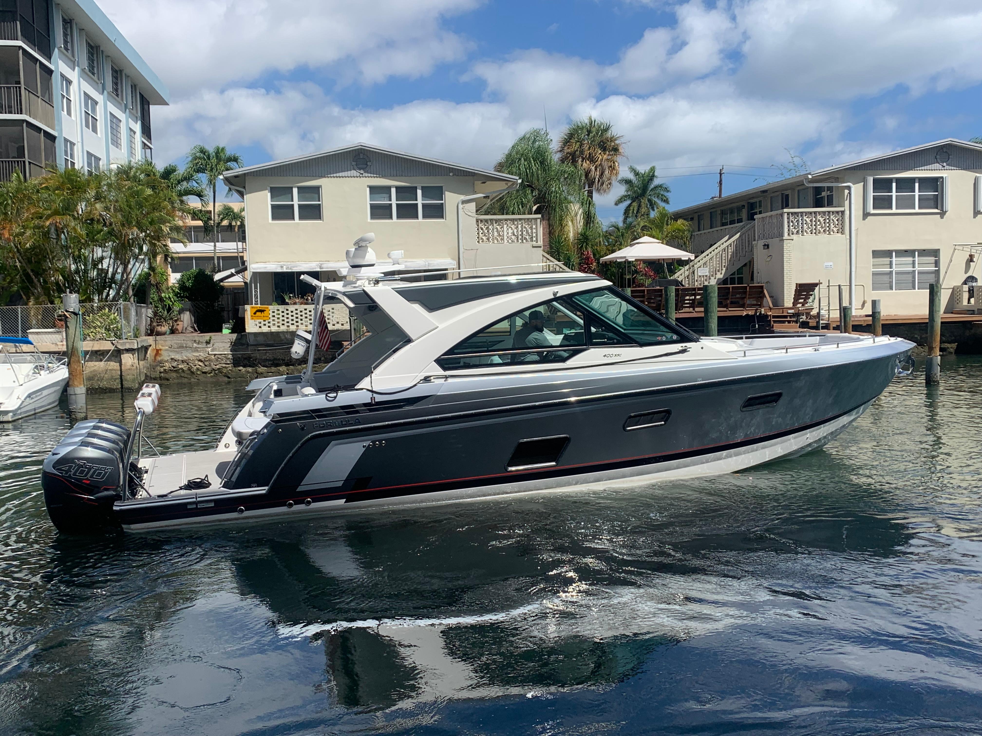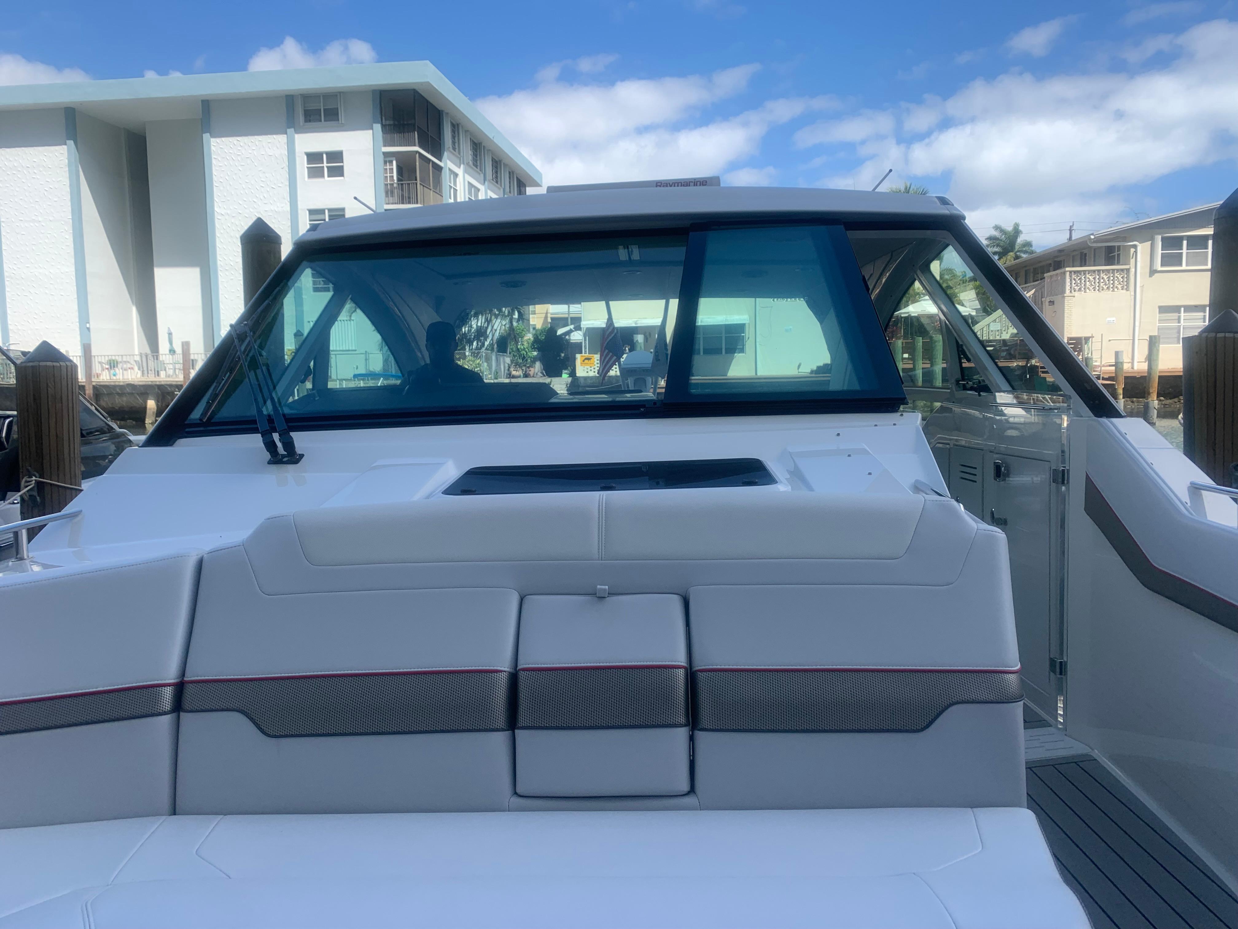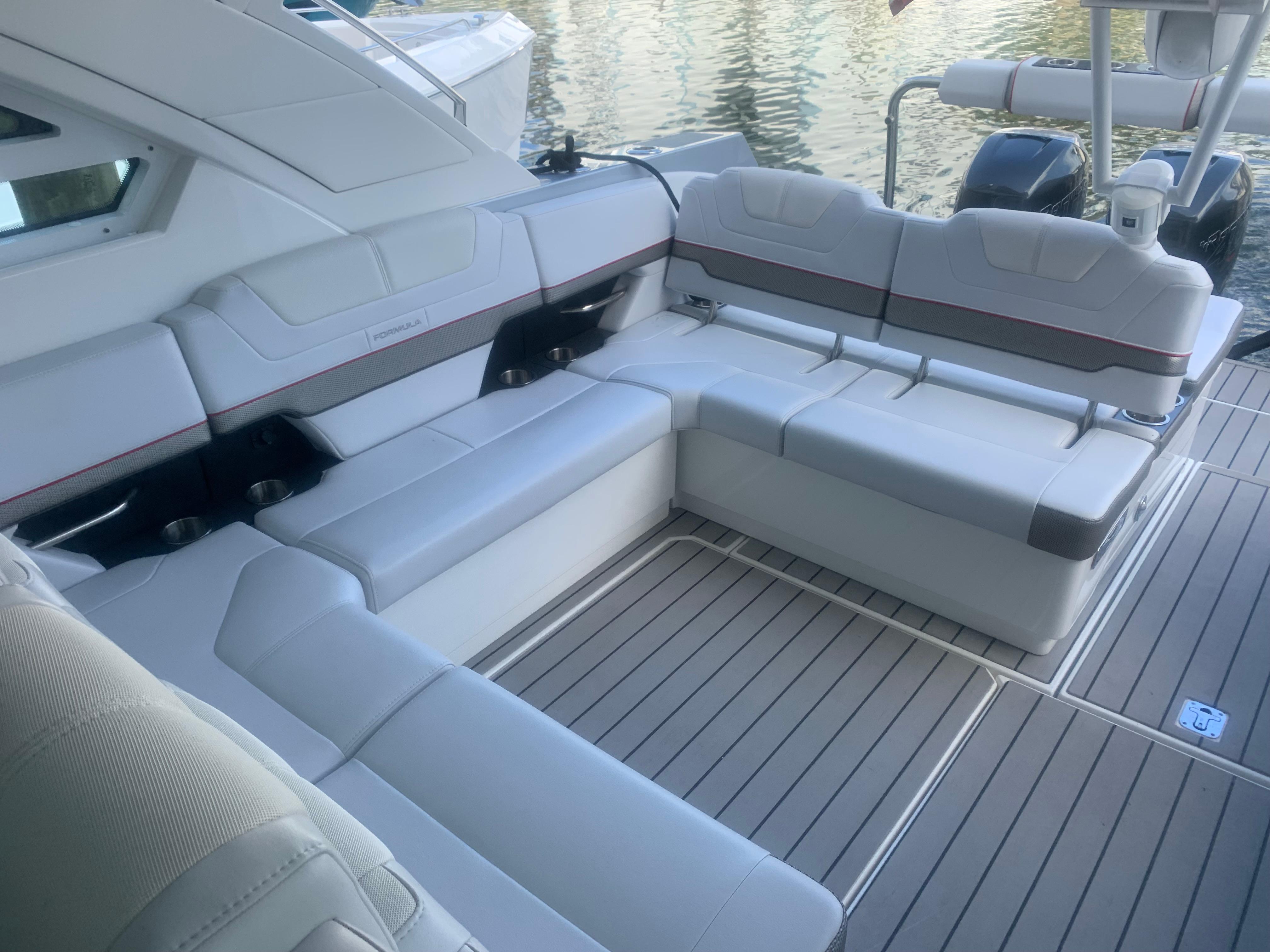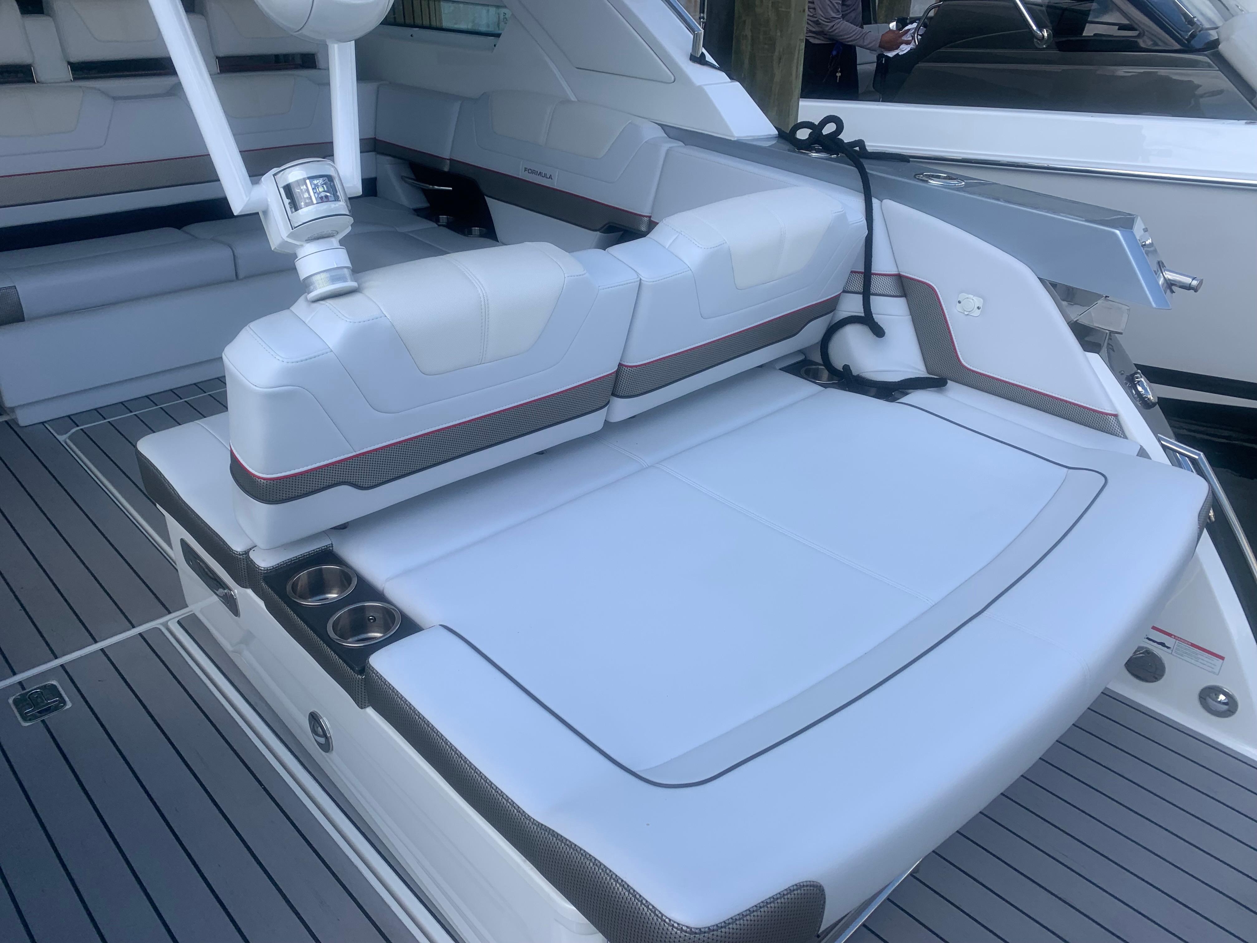 At 40’ in length with a 12’ beam, the 400 SSC centers on the full-height windshield and coupe top design that encloses the entire width of the cockpit, allowing guests to move beyond the confines of a center console’s narrow, pilothouse tradition. The Formula Crossover SmartZone™ concept creates separate areas for a variety of activities while encouraging connections among guests, from the expansive bow to triple helm seating to the outdoor kitchen and U-shaped lounge aft with convertible rear-facing sunpad and extended swim platform.