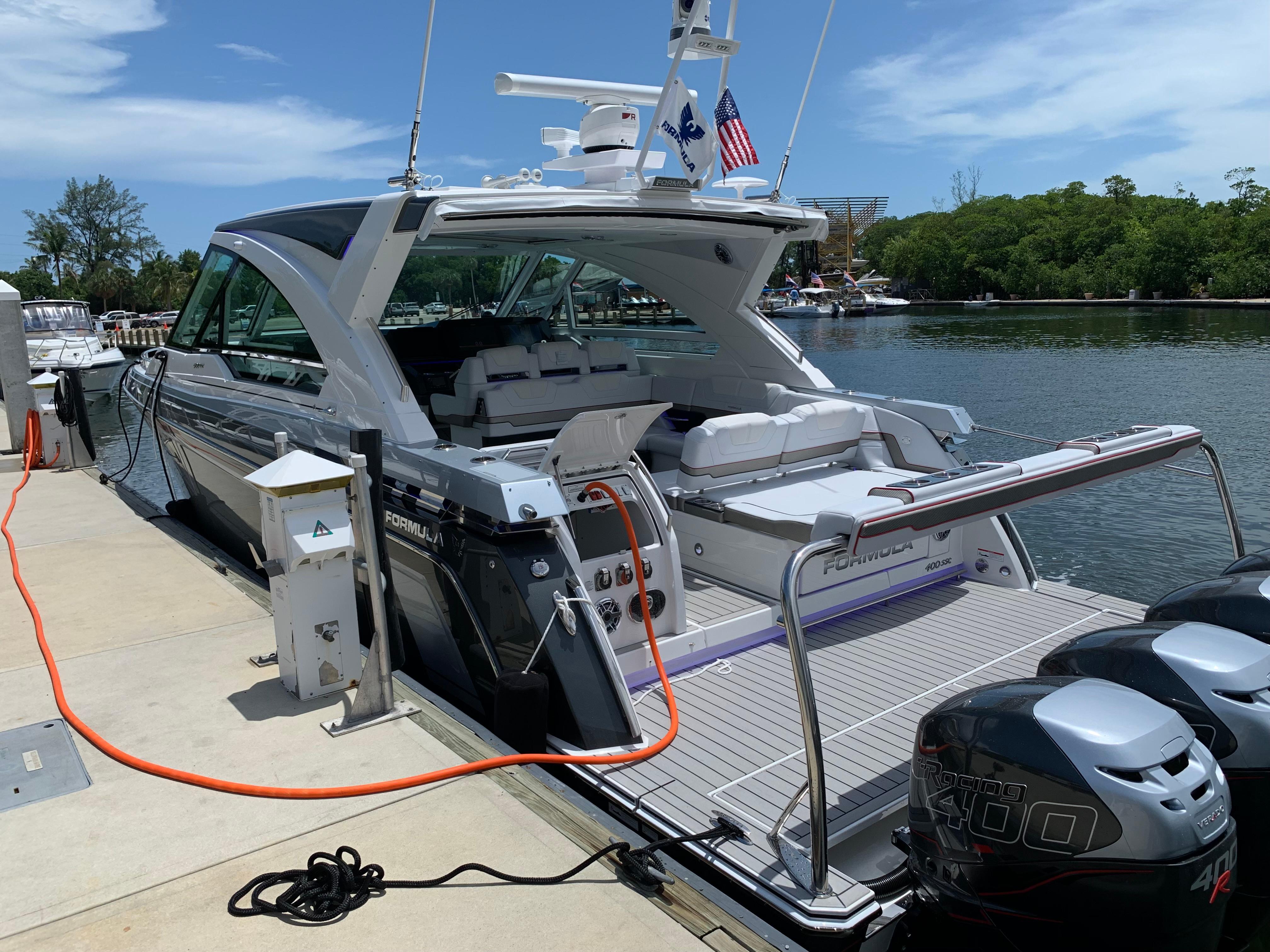 400 SSC cabin accommodations offer amenities that are unprecedented in an open bow design, including a convertible dinette/sleeping berth plus aft stateroom bed, stand-up private head compartment and entertainment galley with sink and microwave. The FAS3Tech multi-step hull design with quad outboards delivers world renowned Formula performance.