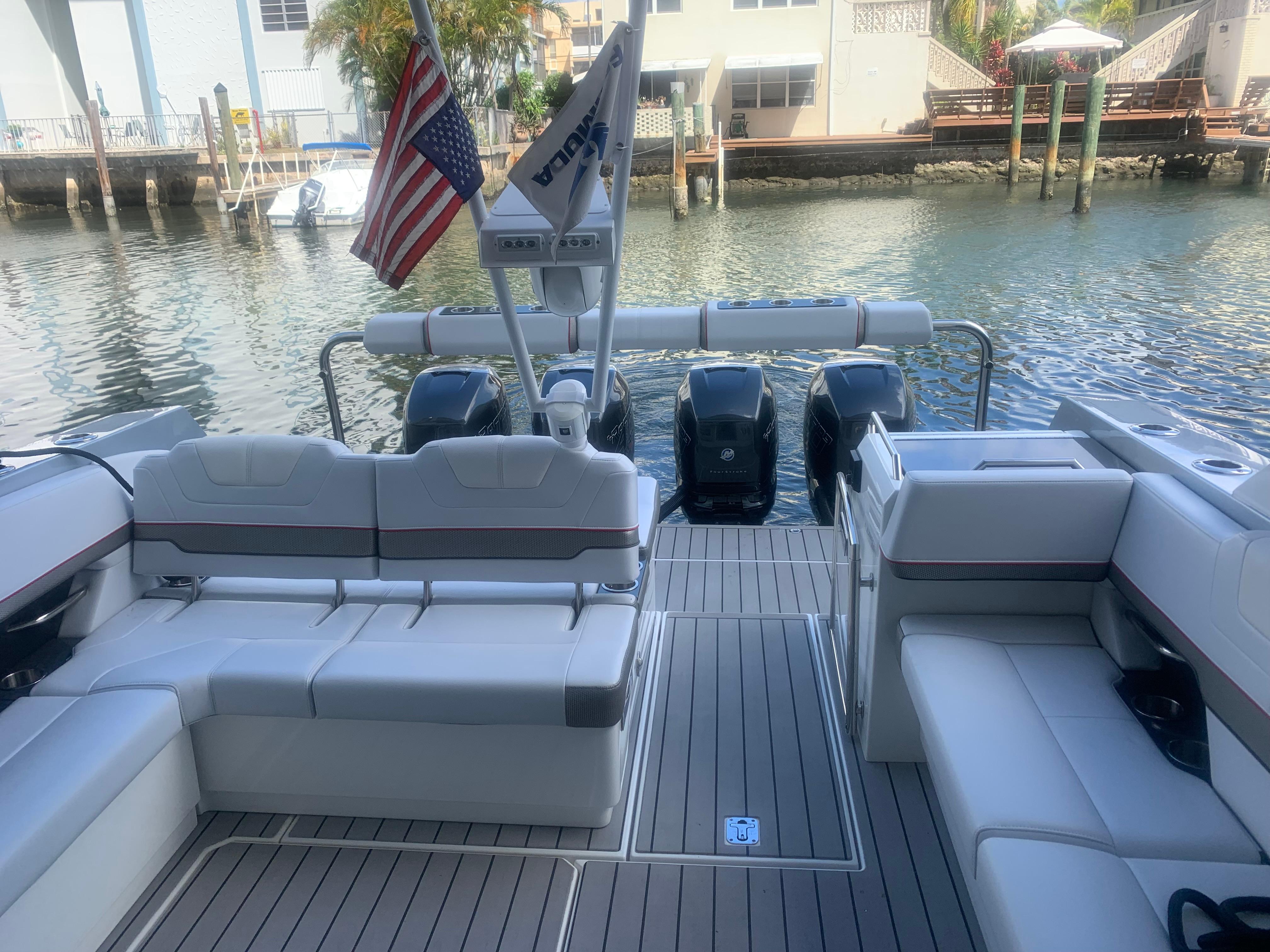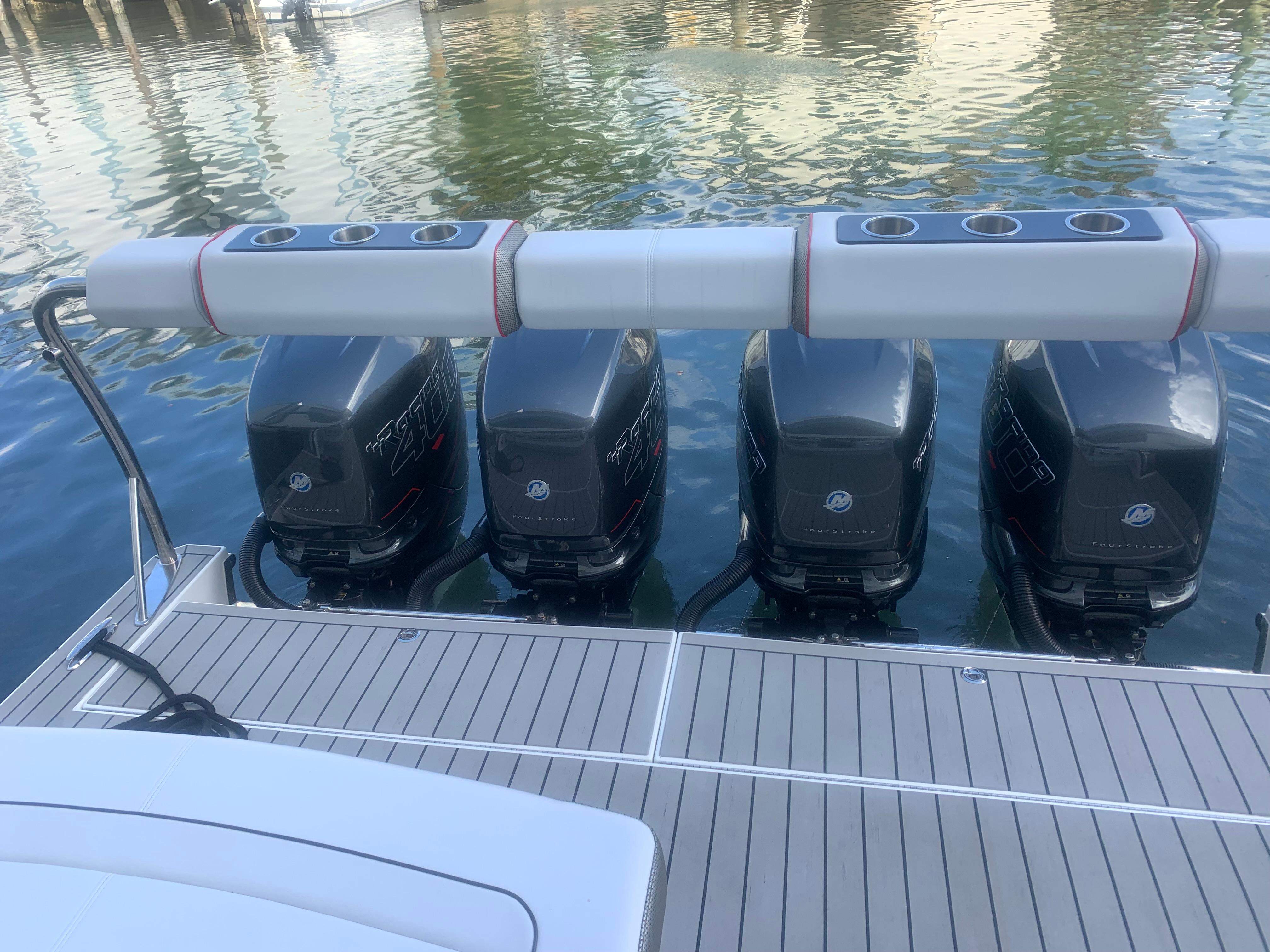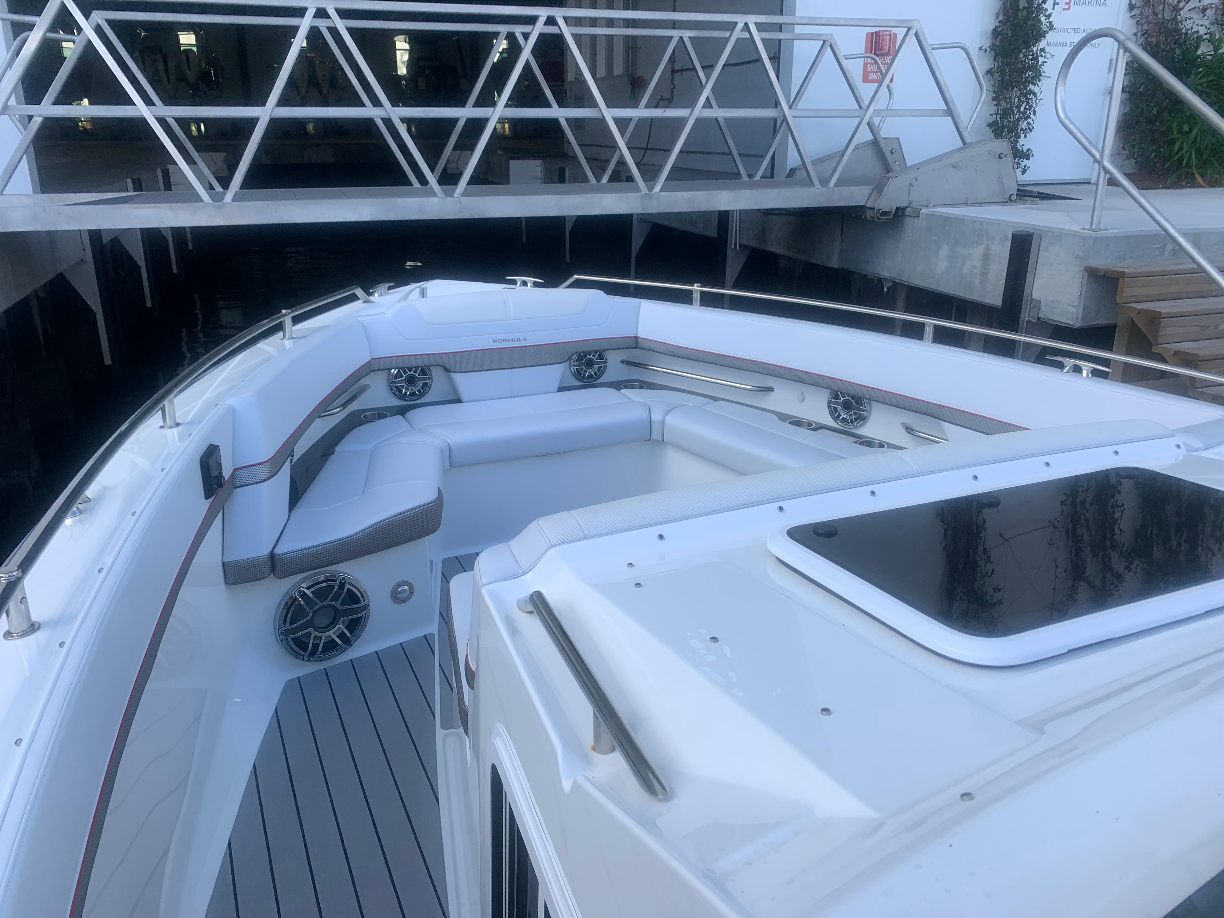 400 SSC cabin accommodations offer amenities that are unprecedented in an open bow design, including a convertible dinette/sleeping berth plus aft stateroom bed, stand-up private head compartment and entertainment galley with sink and microwave. The FAS3Tech multi-step hull design with quad outboards delivers world renowned Formula performance.