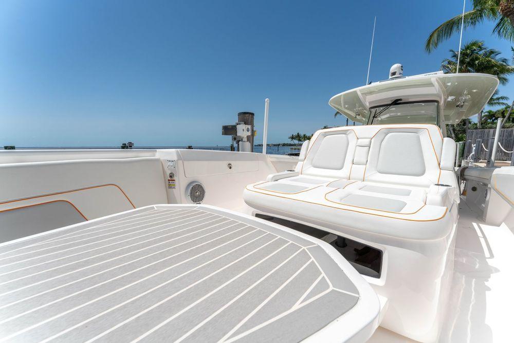 The Intrepid 407 Panacea is a 40-foot center console that blends luxury, performance, and versatility, making it equally suited for offshore runs, family cruising, or entertaining at anchor. Built on Intrepid’s proven stepped-hull design, the 407 delivers a smooth, dry ride and impressive efficiency at speed. Owners can select multiple outboard configurations, typically triple or quad engines, for exhilarating top-end performance paired with confident offshore handling.