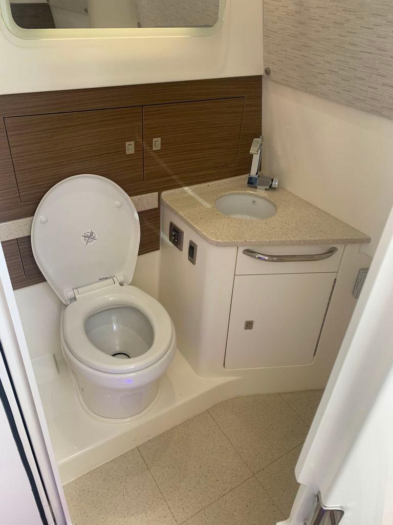 - Electric Vacu-Flush® toilet, holding tank with vent filter, overboard discharge, dockside pump-out and tank level indicator