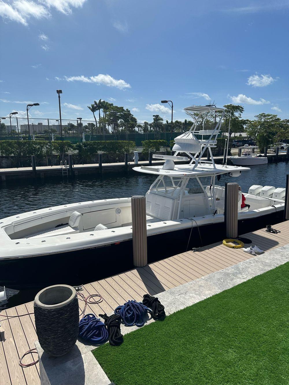 2016 Invincible with Quad Mercury Verados @ 400hp each. Two of the engines were replaced and repowered in 2019 so only 5 hours, the other two have 550 hours.