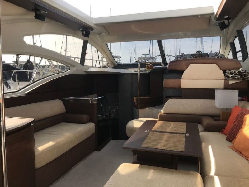 Two Stateroom/2 Head plus conversion berth at the settee in salon. Powered with Twin Volvo Diesel 500's with IPS drives @ 370 hp each with LOW HOURS insure a reliable performance and exhilarating cruise. The light and spacious salon provides amazing 360-degree panoramic views. The most comfortable and luxurious accommodations for your perfect weekend get away!