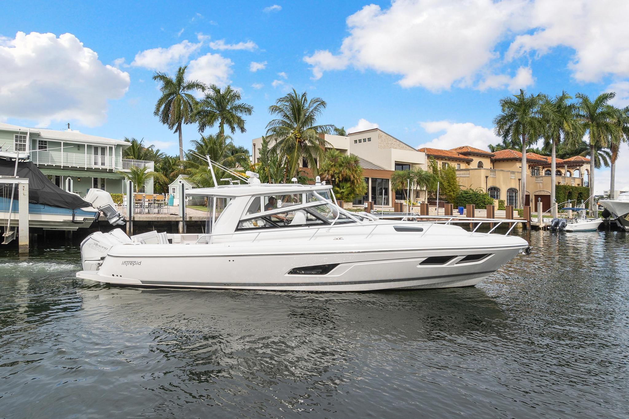 This like new Intrepid 438 Evolution is the only late model 438 currently on the market. She has never been fished and only has 111 hours of use. Additional Helm AC was added at the factory. Stern thruster, bottom paint, Seadeck decking, full aft covers were added late 2021.