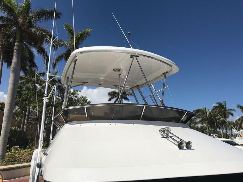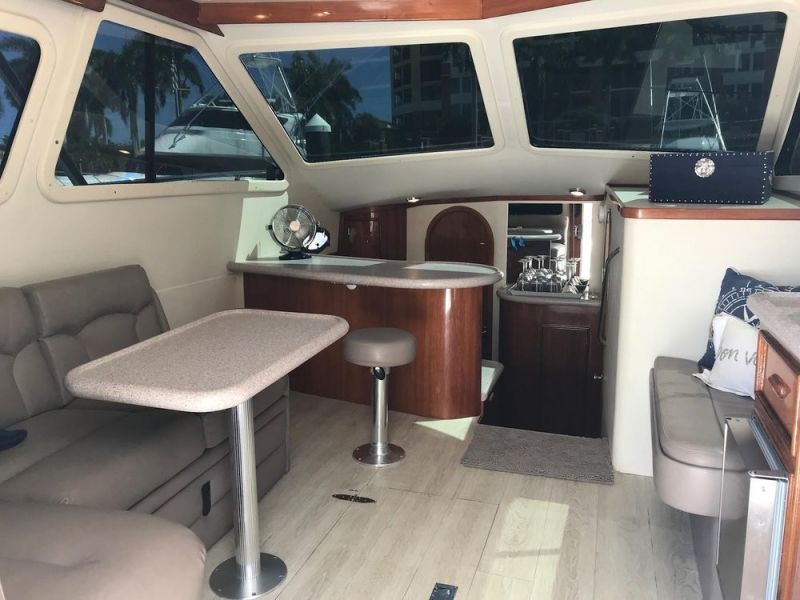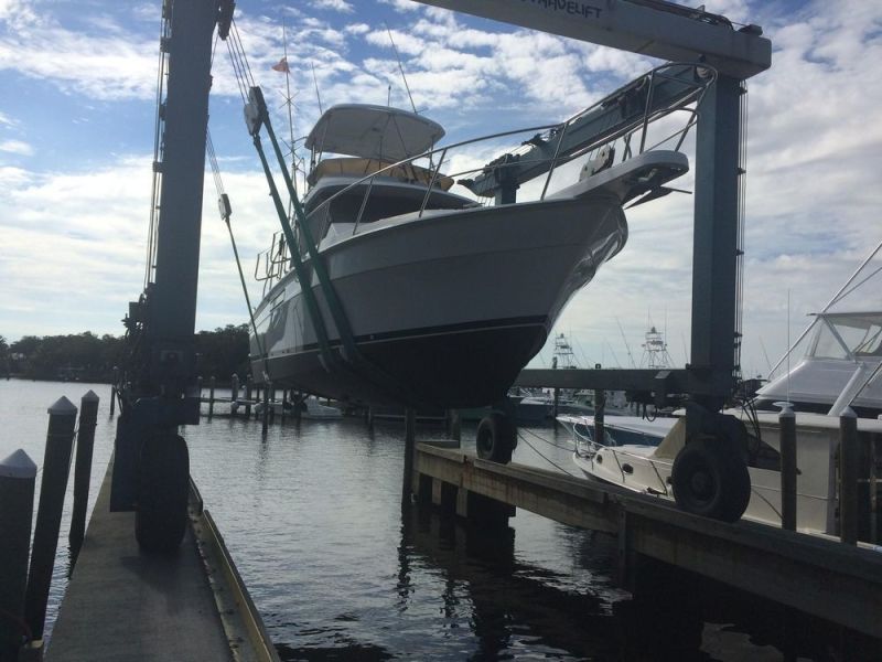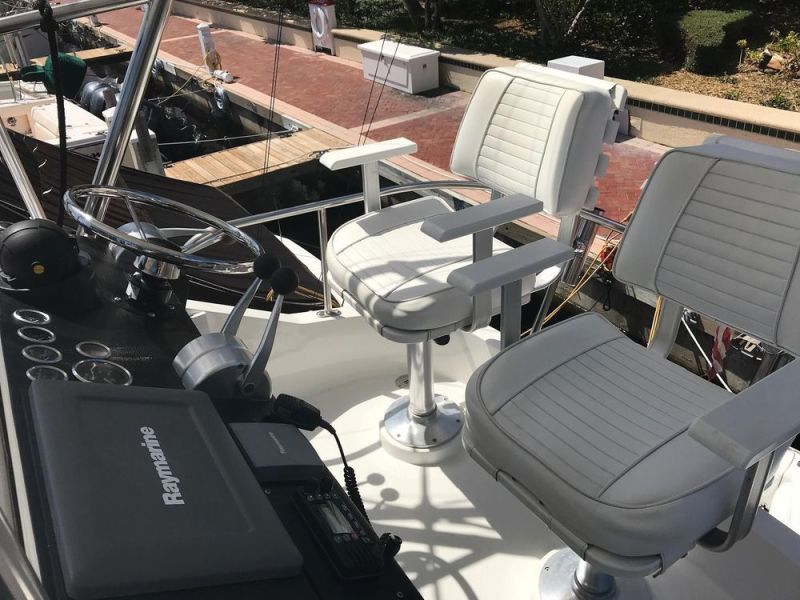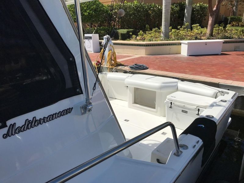 Traditional convertible design, built in California. A great boat for fishing, diving and family cruising. Fly bridge with hard top, stateroom plus head and separate shower and twin CATs with 21 knot cruise.