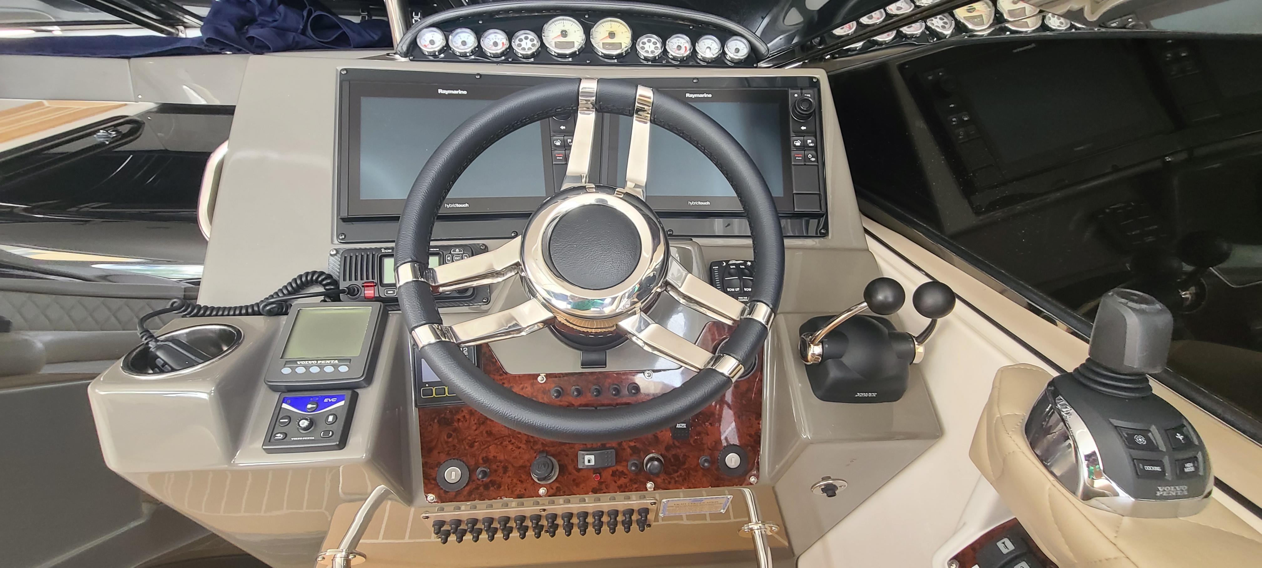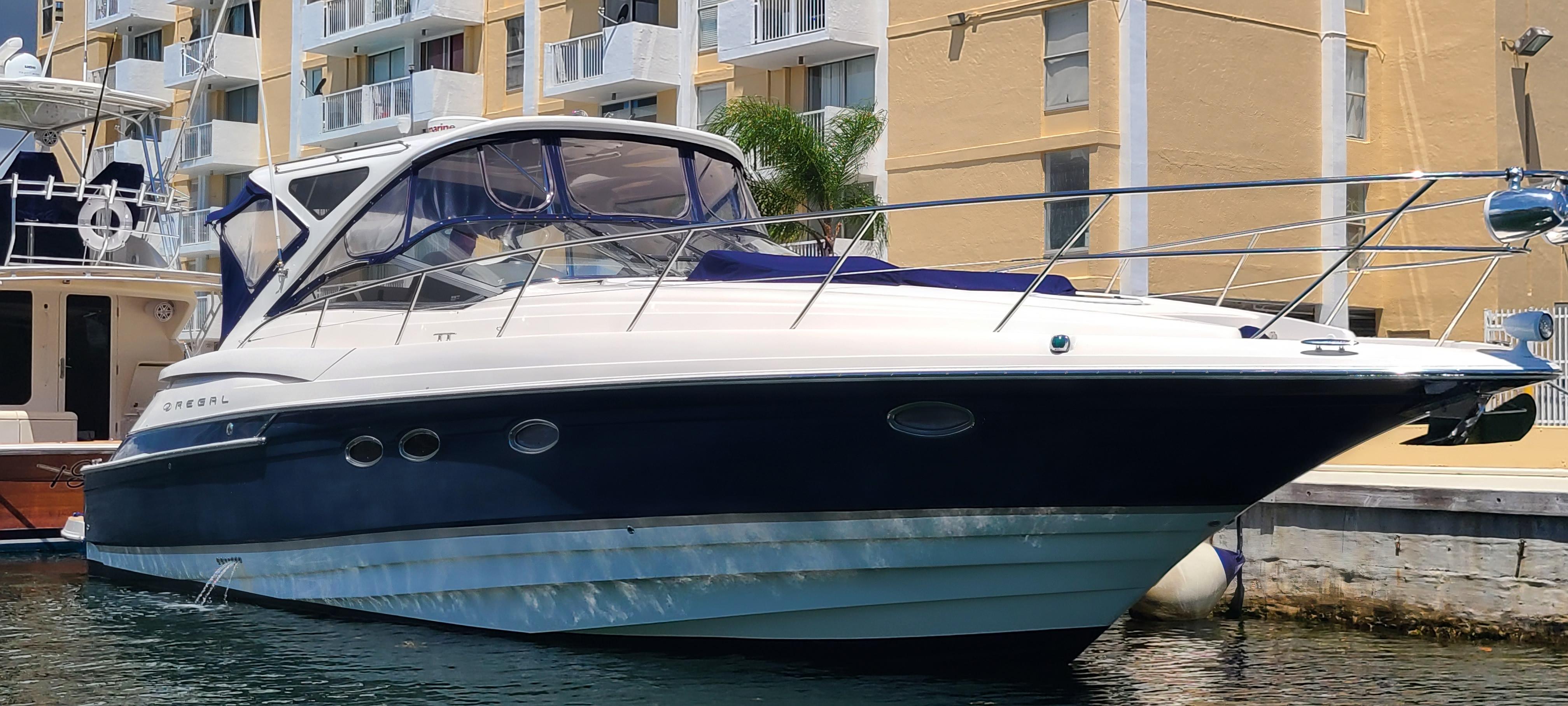 Look no further if you are in the market for an express cruiser that is turnkey ready to go. You are going to want to see this Regal Commodore 4460. It is powered with the more desirable Volvo IPS 600's that give reliable efficient cruising and joystick controls for when space is tight. Entertainment space is abundant throughout the boat with cockpit seating areas, bow sun pad and aft deck. If you are looking to get away for the weekend, she has two fully enclosed staterooms with ensuite lavatories. The salon is very open and spacious with a full galley and dinette and also has a flatscreen TV with surround sound stereo. The boat was already loaded with great options and features when her current owners purchased it and has received a multitude of upgrades, improvements and heavy maintenance since. The owner has all records of work and maintenance performed under his open check-book approach to this boat.