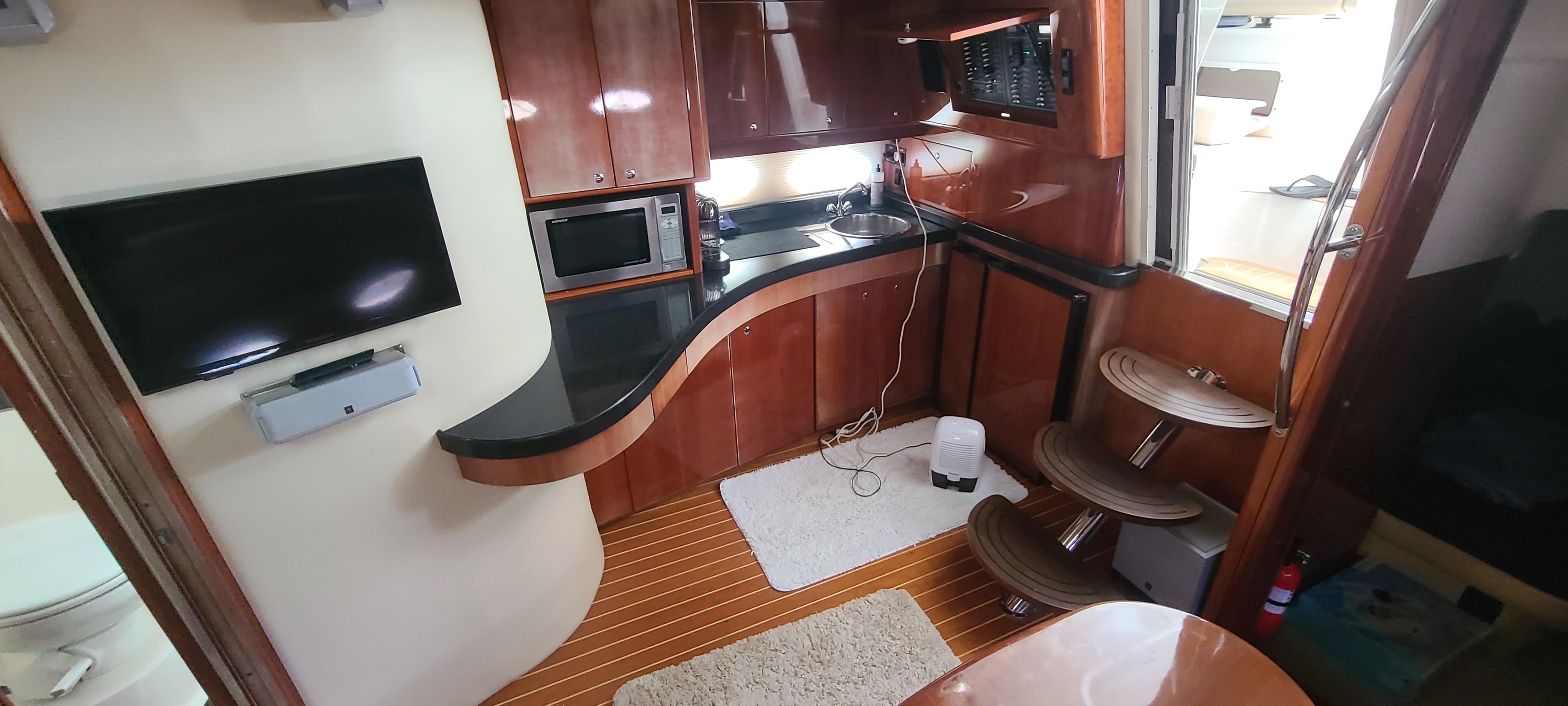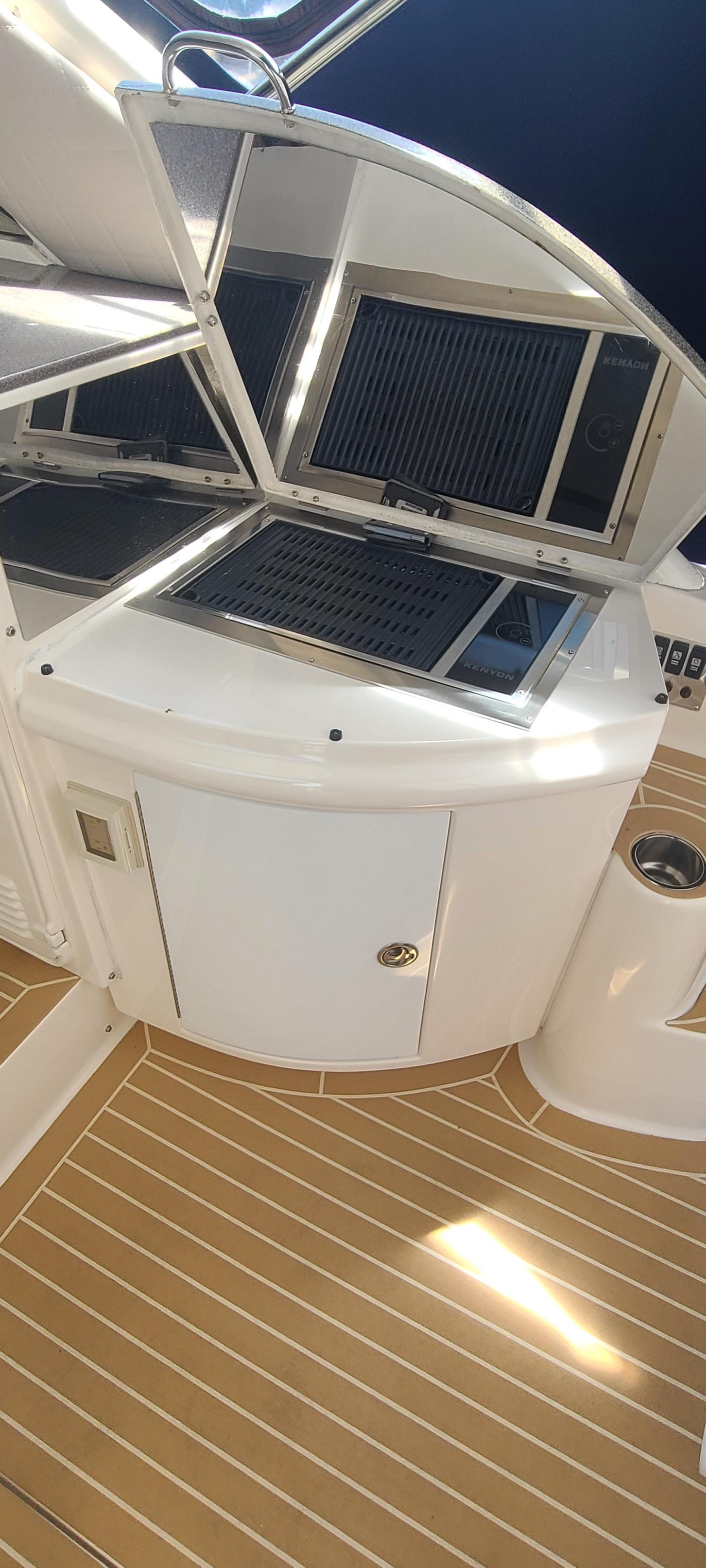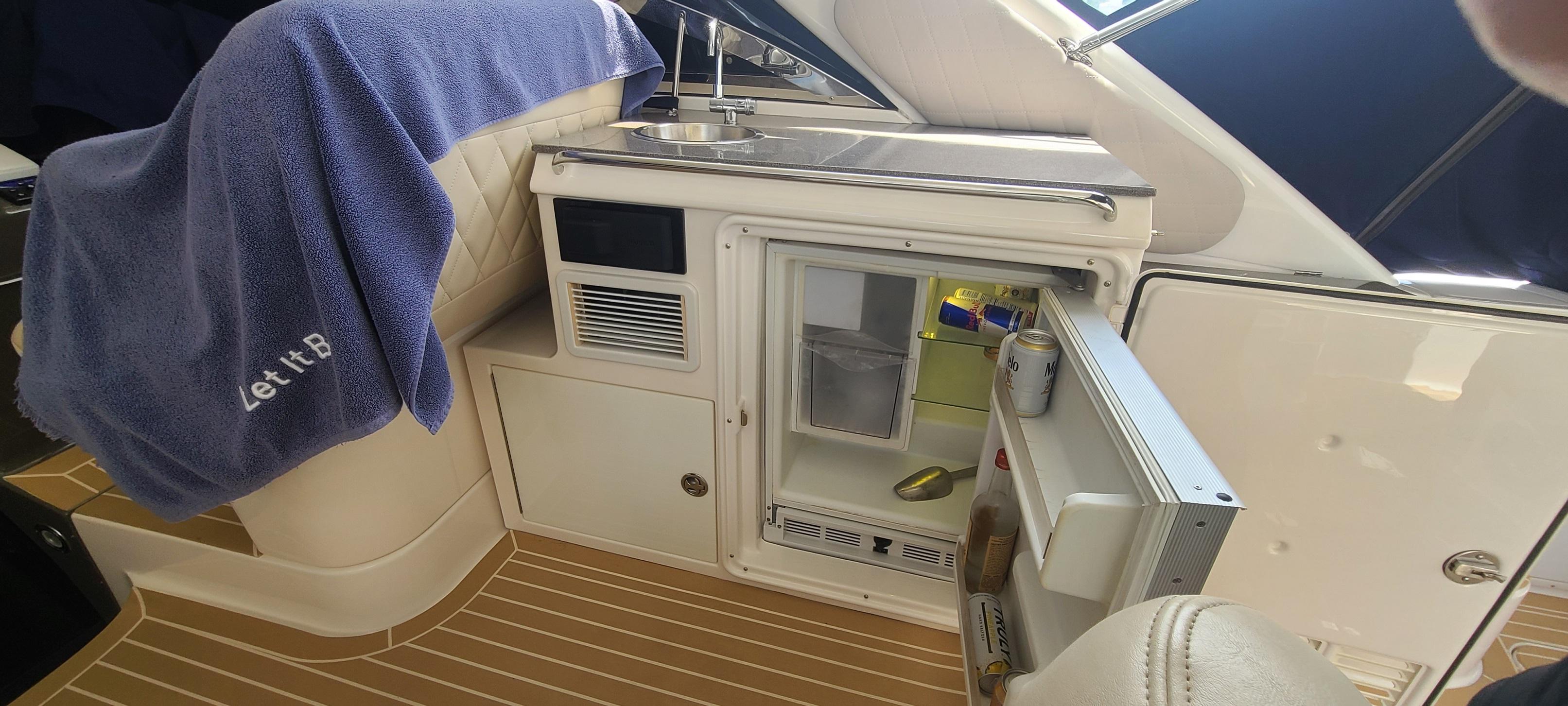 - Large cockpit wet bar with sink grill and large refrigerator with ice maker