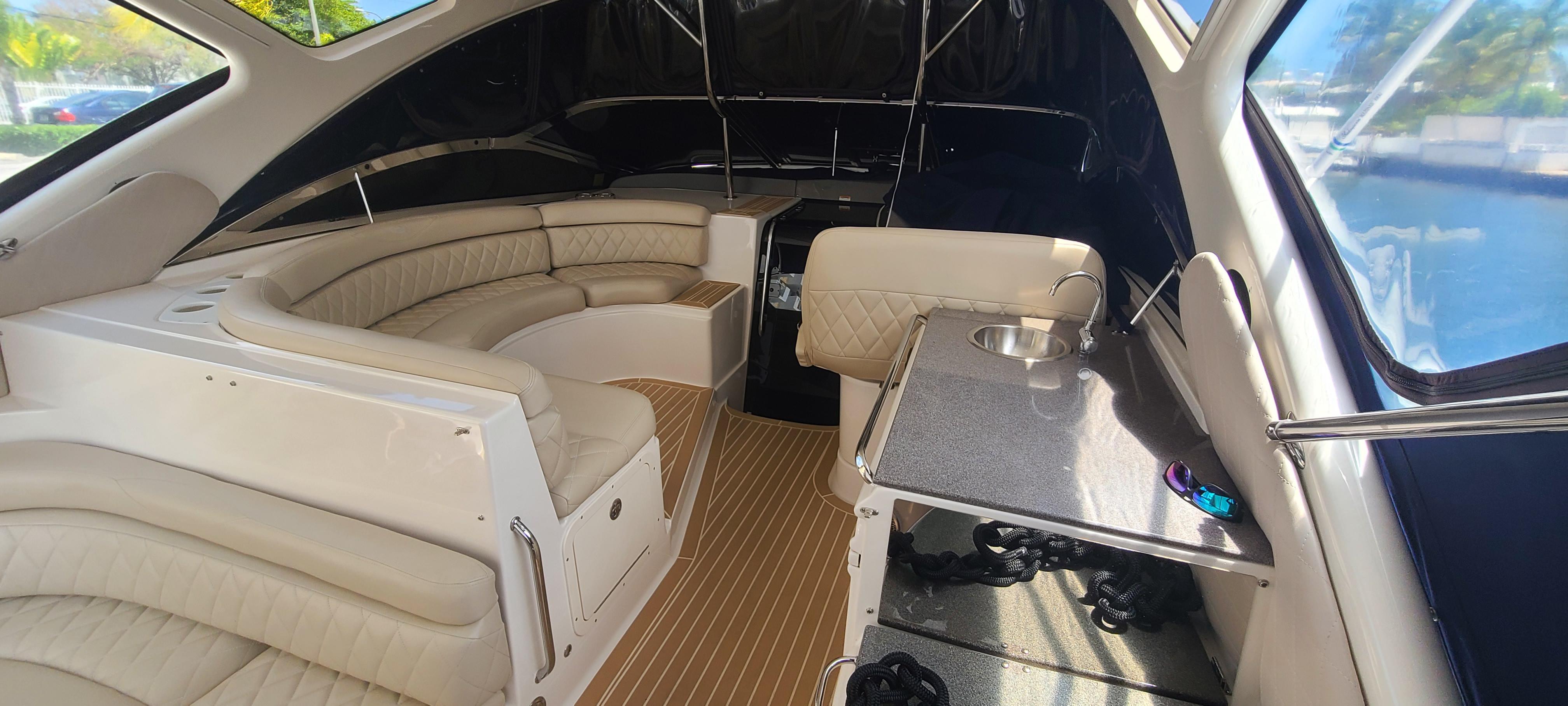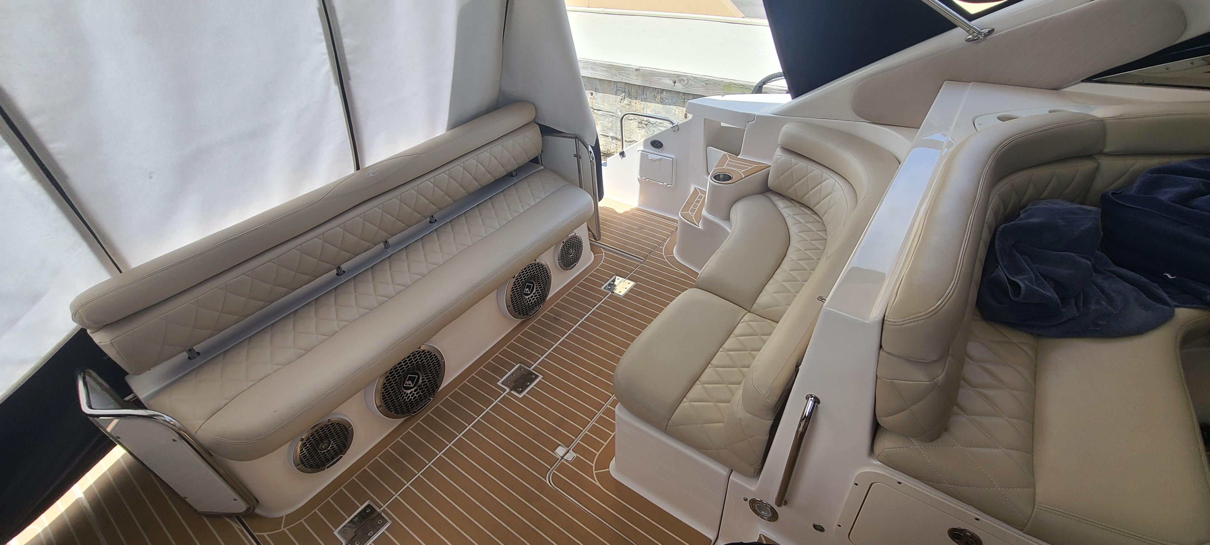 - All new vinyl with diamond stitching in the cockpit seating area and bow sun pad.