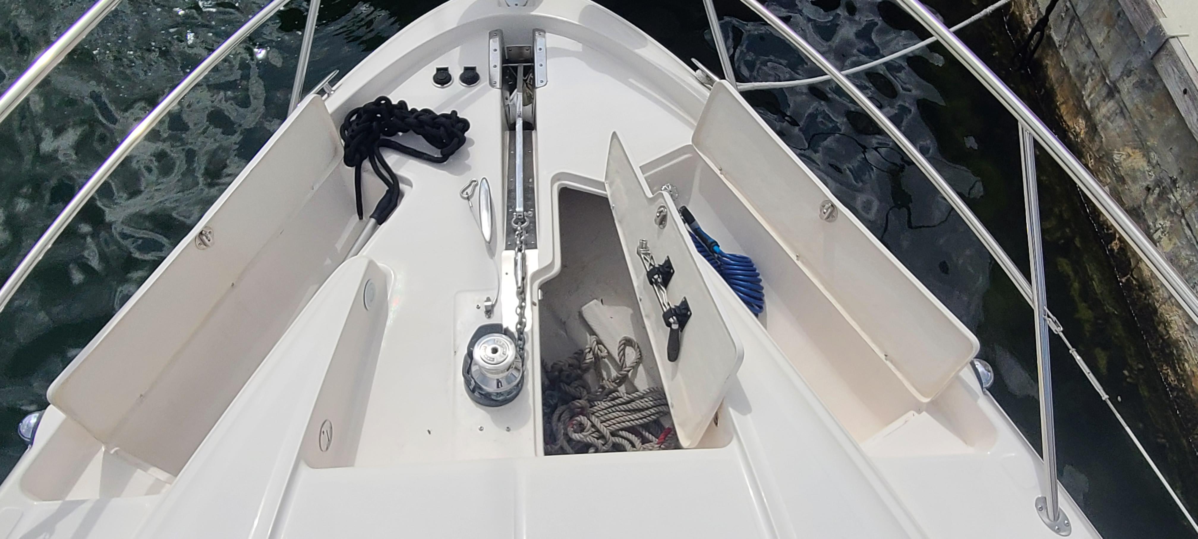 - New Plasdeck synthetic teak floors throughout cockpit and swim platform.