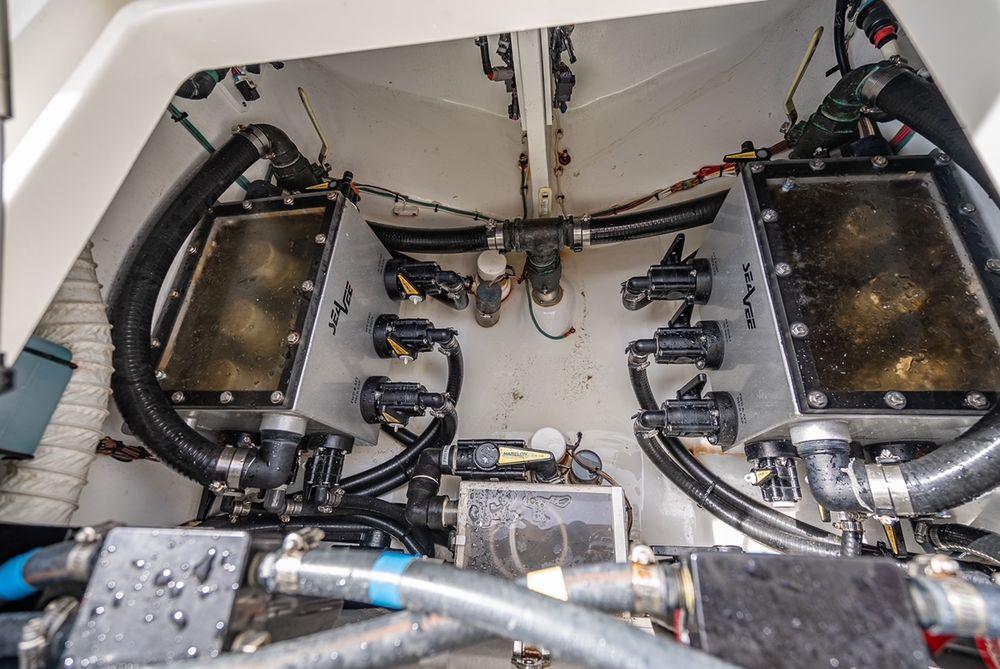 With Quad 450 Mercs all Custom Painted w/Warranty thru 3/1/2026 Platinum, 400hrs, Custom Fiberglass Top w/Gap Tournament Tower w/Gemlux Bases & 22' Carbon Fiber Poles, Rigid 40" Light, Triple Bolster Helm Seats w/2nd Row Bench Seating & Elec Slide Out Cooler, EZ Puller Windlass w/upgrade to 600ft of Spectra Line, Bow Thruster, 2-Side/Dive Doors, Edson Black Wheel Helm, 703-7" Vessel View, Upgraded Teak Cabin Table, 9KW 75amp Diesel Genset Helm & Cabin A/C Units 16k BTU, Seakeeper 6AC Gyro, 50amp Service, 5-Livewells 4-Aft, 1-Frw Floor w/Two 3-Pump Seachests, Finished Awlgrip Bilge, 12-Console Rod Holders, 39-Gunnel Rod Holders + 2-Swivel, 6-Deck ring Gunnel Rod Holders, 5-Elec Reel Outlets, Under Gunnel Lighting W,R,B & Mauve, 4-Underwater Lights RGBW, Compartment Lights, Refrigeration Cooling Plates for Lg Frw Fishbox, Tower full controls + Garmin 8612 + Icom VHF, Helm: 2-22" Garmin Units + 1-16" 8616, 2-Grid Remotes, 1224 x HD2 Open Ray Radar, CM599LH-W KW Transducer Glassed in Keel, Garmin Auto Pilot, GXM54 Sat Ant, Icom M400BB VHF, Marine Gaurdian 2.0 Alarm System & Tracker, Fusion MS-AV755 Stereo, JL Audio Speakers & Amps, Speakers: 2-6.5" + 2-7.7" + 10-8.8" + 2-10" Subs + 2-12" Subs Driven by 3-Amps = 3,400 Watts of Power, Fresh Bottom Paint Turn Key Ready to Go New 45 in production