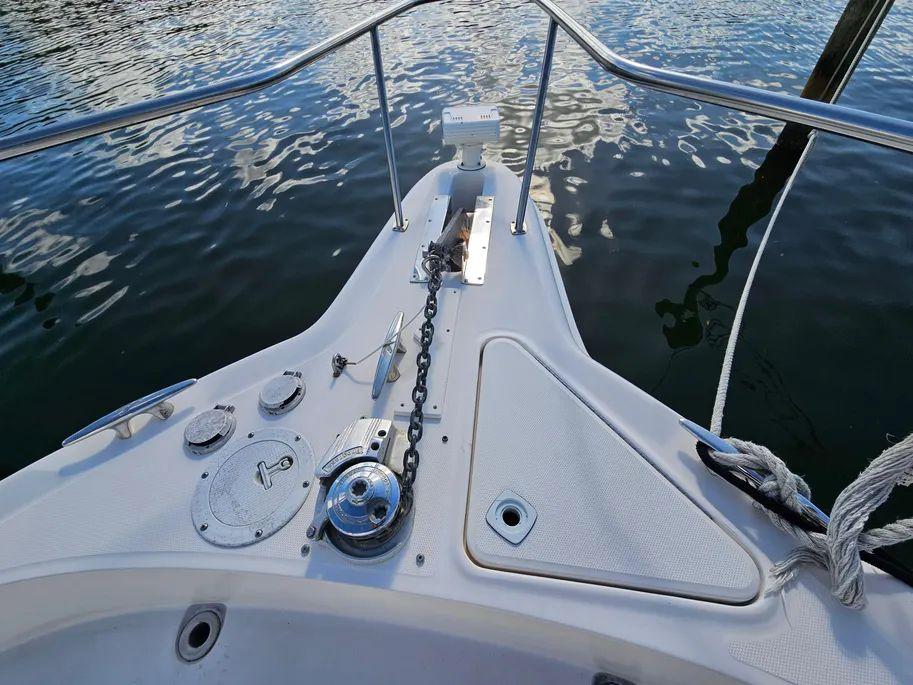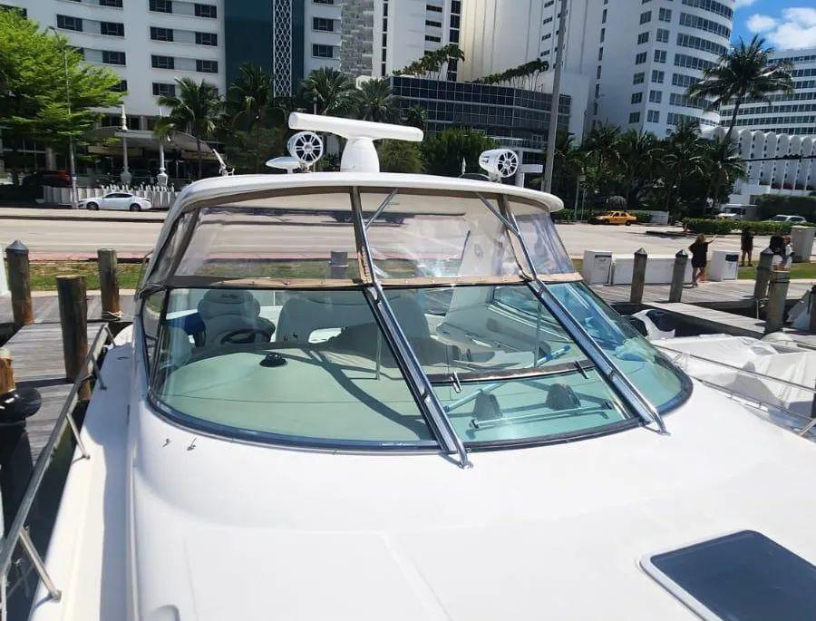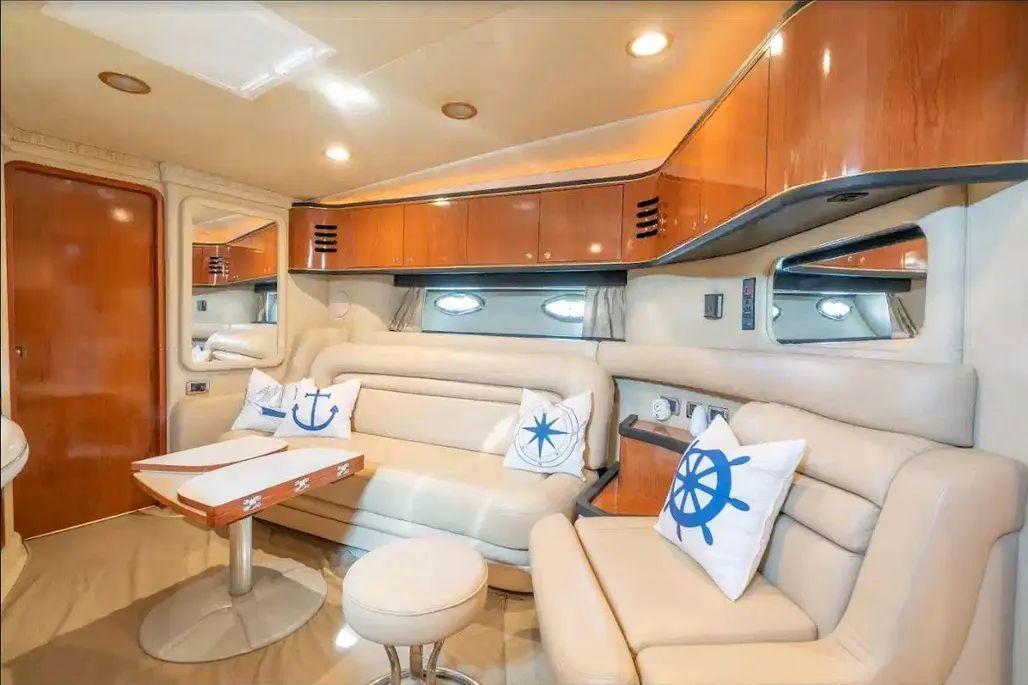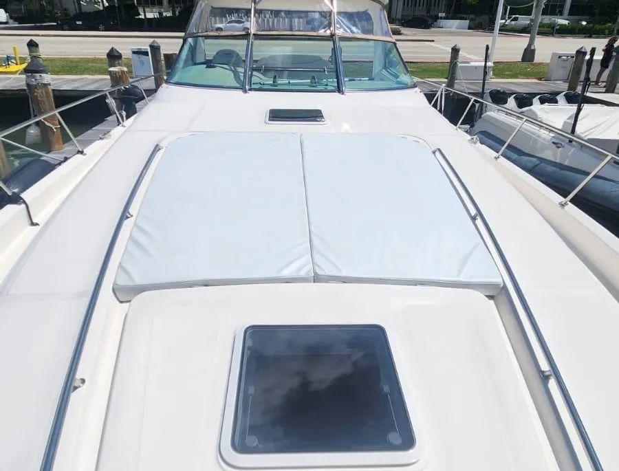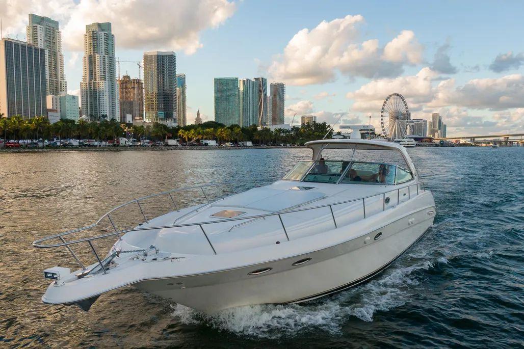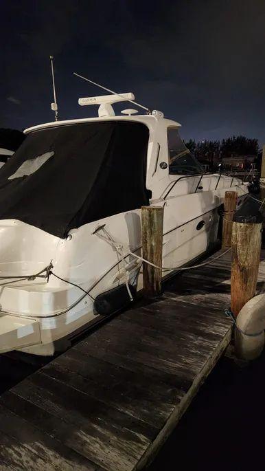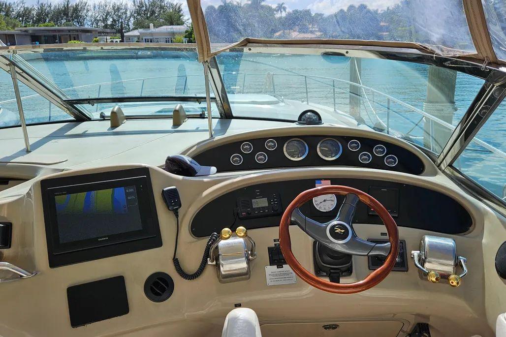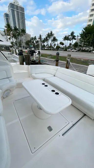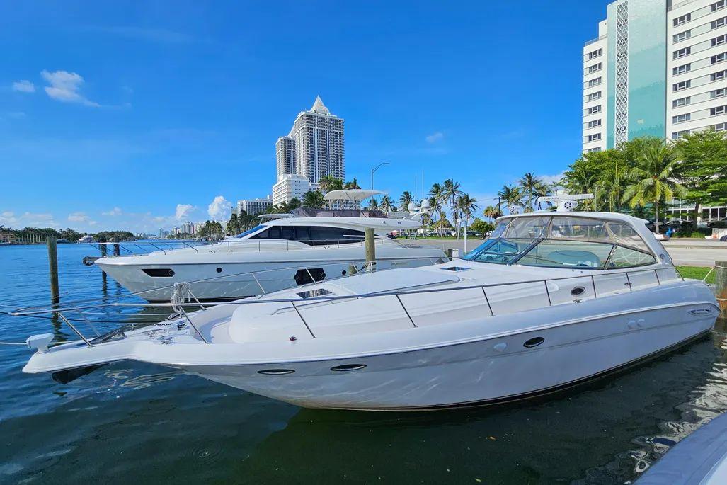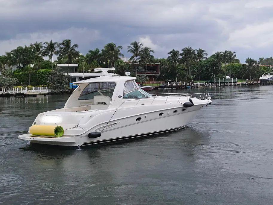 This Sea Ray 460 Sundancer is a great opportunity to get into a large family cruiser with everything you need for a day of cruising or a long weekend with family and friends. Her always reliable Cummins 450's will get you there quietly and efficiently. The spacious cockpit and wide-open bow area are great for entertaining. Down below is the salon with an open galley and seating area. A large V-berth is forward and enclosed stateroom aft, both with enclosed water closets.