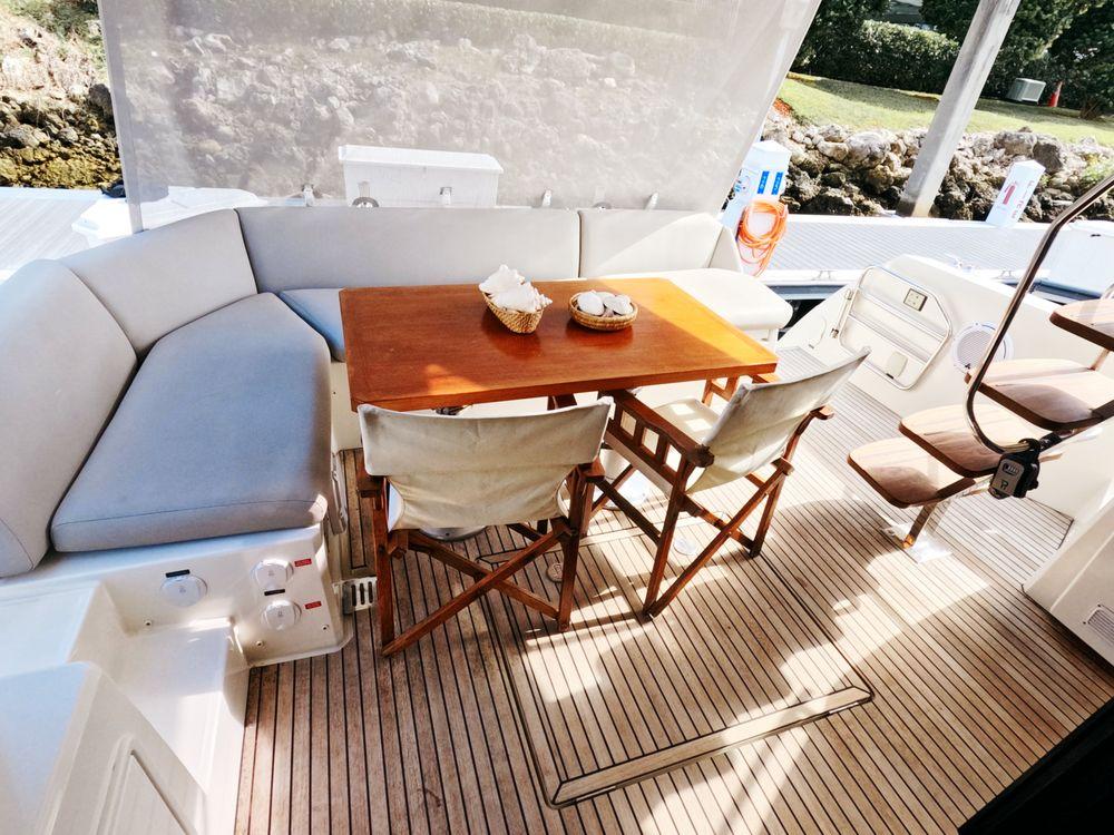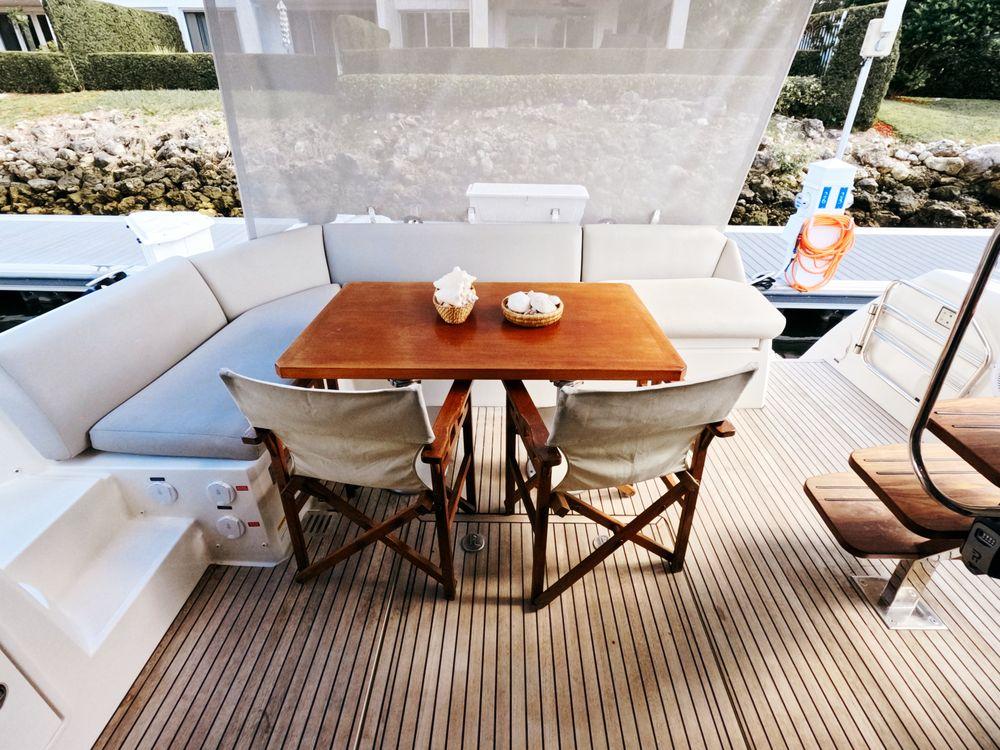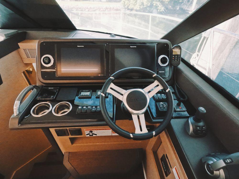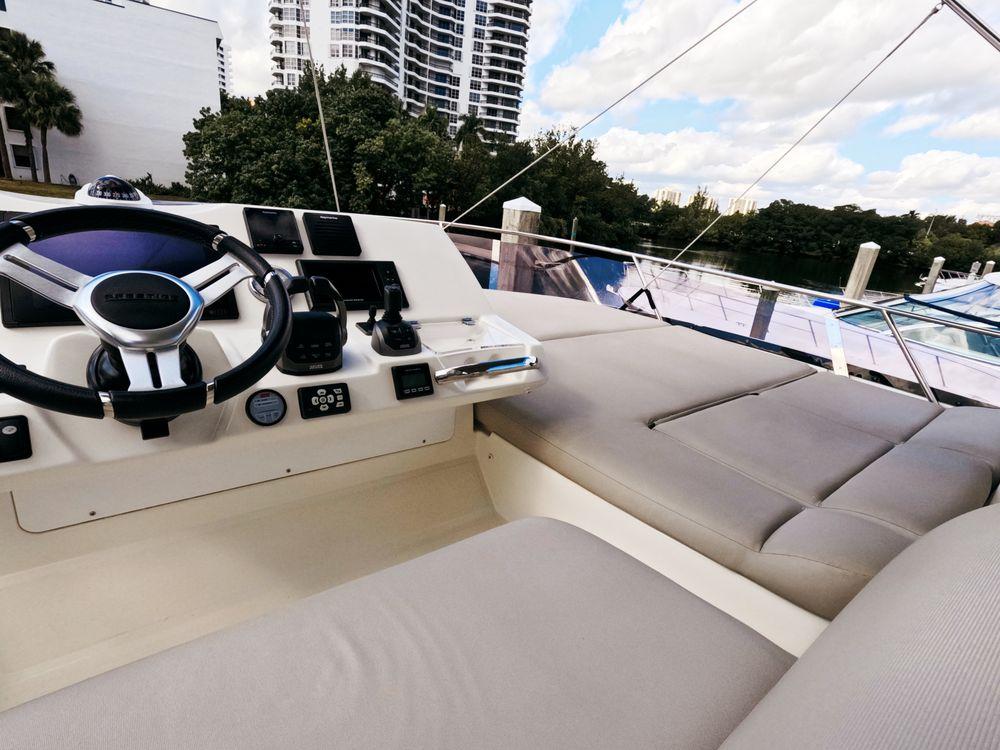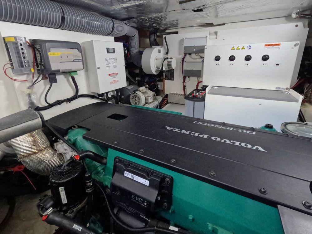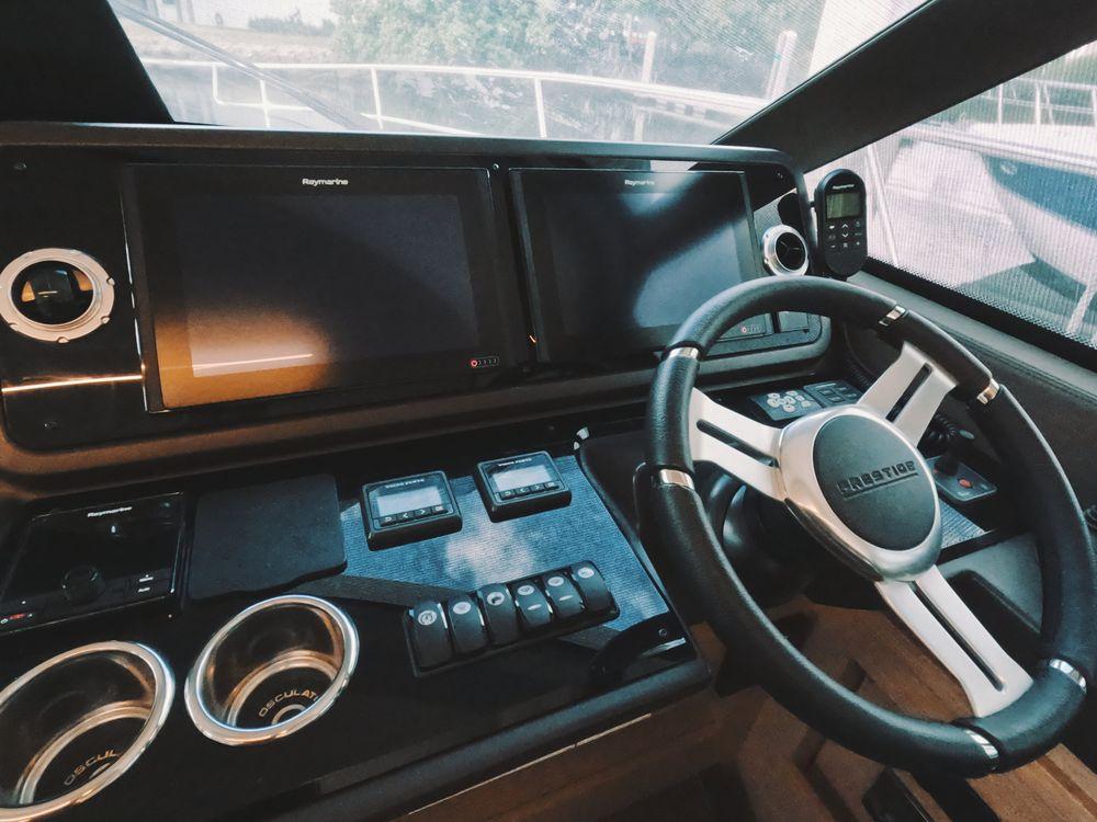Powered by twin Volvo Penta diesel engines, this yacht offers smooth performance and efficiency. The Joystick control system ensures precise boat handling, making docking and maneuvering a breeze.