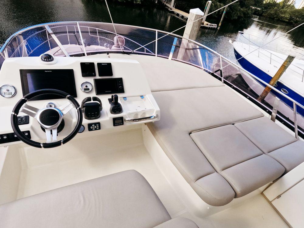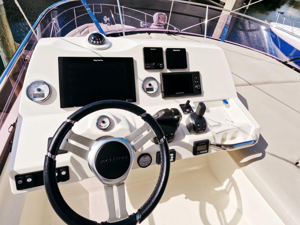 A custom-built staircase with larger steps provides easy access to the spacious flybridge. All maintenance is current, making this vessel ready for its next adventure. Don’t miss the opportunity to own this exceptional yacht!