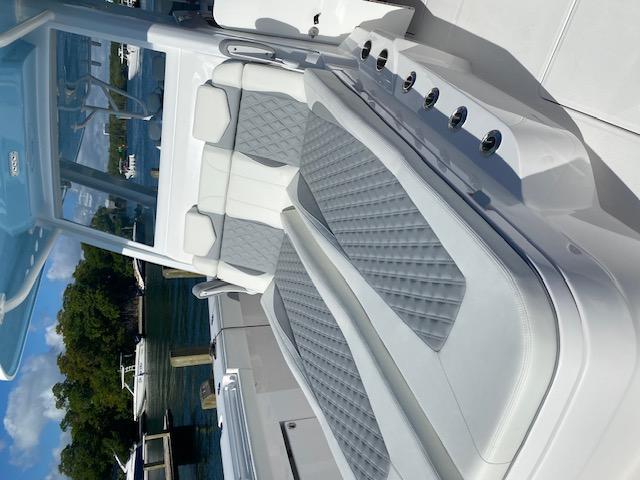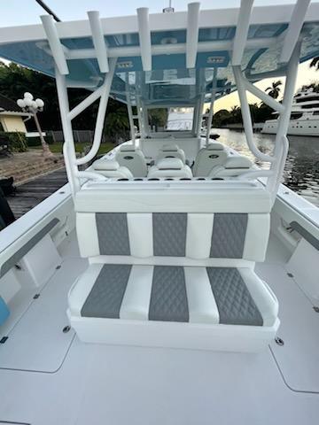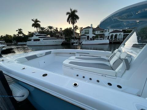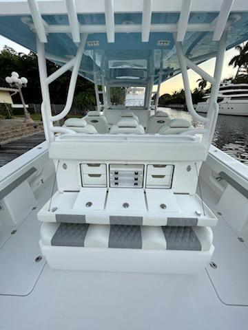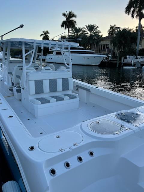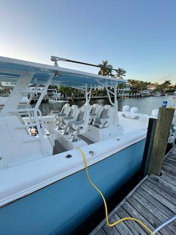 Seakeeper 3 warranty through 2026 Joystick Control - SeaStar Optimus 360 GOST security and satellite tracking system JL Audio Amplifiers and Cockpit Speakers 2 VHF Radios Sirius XM Antenna and Tuner Flir M625 High Resolution Thermal Camera 2 KW Transducer ACR Ocean Signal EPIRB Garmin 6' Array Gemluxe Outriggers with Carbon Fiber PC1800 Battery Upgrade Reverso engine flush system Dual Best Chest Sea chest Upgrade Ceramic coating on all exposed surfaces Covers: Extended console cover Engine covers (2) Leaning post covers (2) Forward and Aft Bahama Shades Windshield Panel Wings Llebroc Diamond stitching Seadeck Marine decking at helm and on console Fold-out storage lockers under gunnels (port & starboard) 4 Livewells Dual 70 gallon in deck livewells Dual aft livewells 2 Fresh water Washdowns (100 gallons of freshwater) 2 Saltwater Washdowns Extended console coffin box 6 electric reel outlets with upgraded #6 wire Rocket Launcher Pad Underwater lights 2 dive ladders (port & aft)