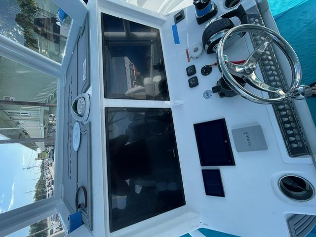 2022 Invincible 46' Catamaran with NEW Quad 400 V-10 Mercury engines with Five Year Warranty-Three Year Platinum and Two Year Gold Warranty. SeaStar Optimus 360 Joystick Control, Upgraded electronics and JL Audio sound system from Langer-Krell with Garmin 8624 24" dual displays, chart reader and software upgrade. GOST system for security. SEAKEEPER 3 with extended warranty through 2026. The boat is in great condition: it has been ceramic coated, is maintained by a Captain and sits on a lift. The new larger yacht has arrived, so the owner is prepared to sell the cradle lift made for this boat at a discount.