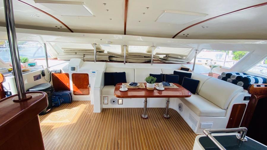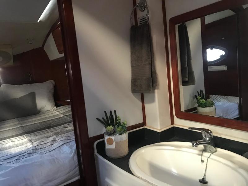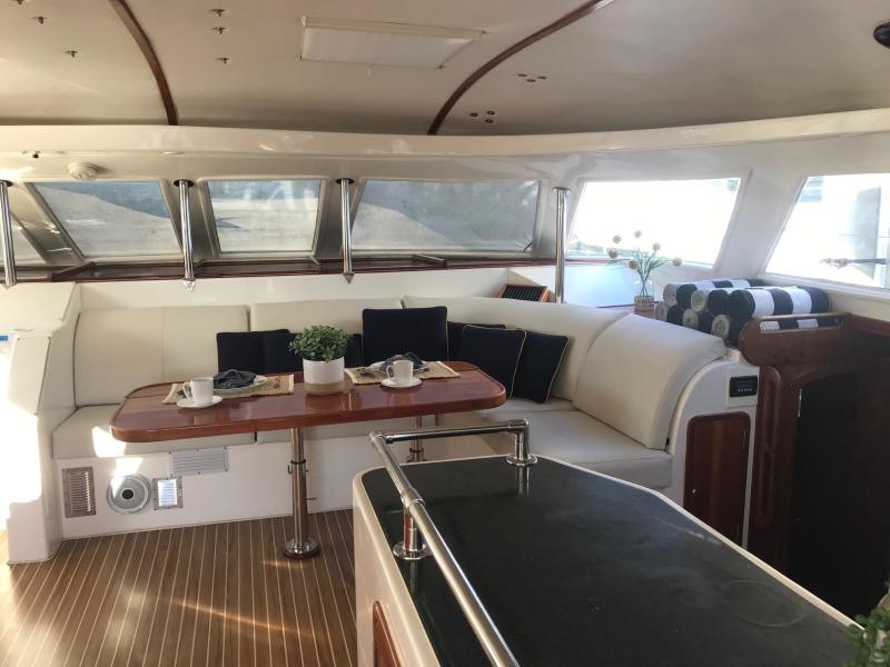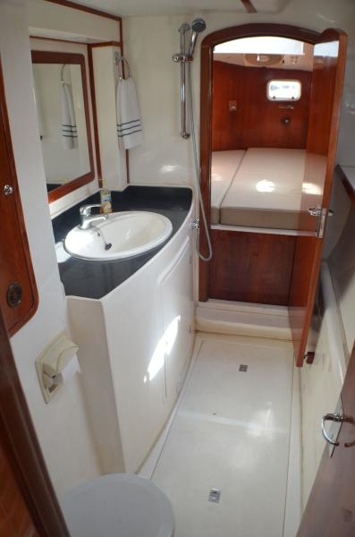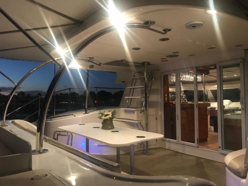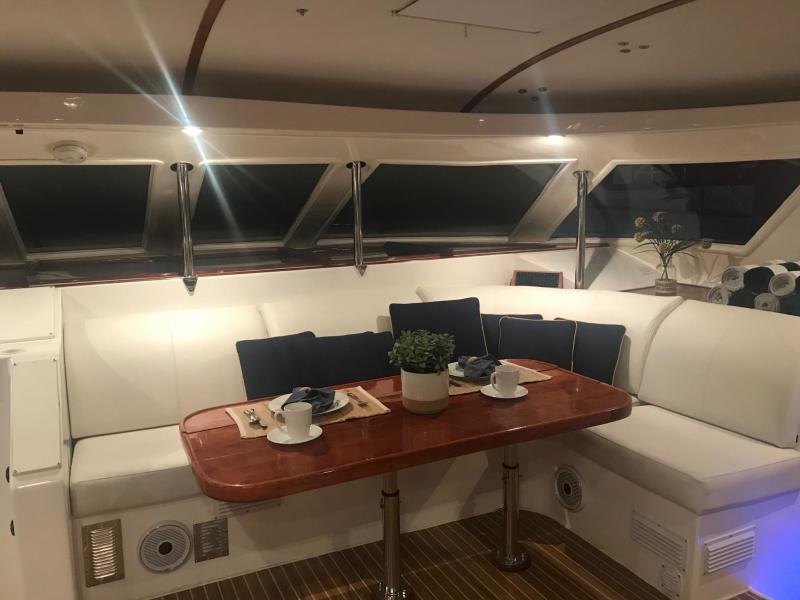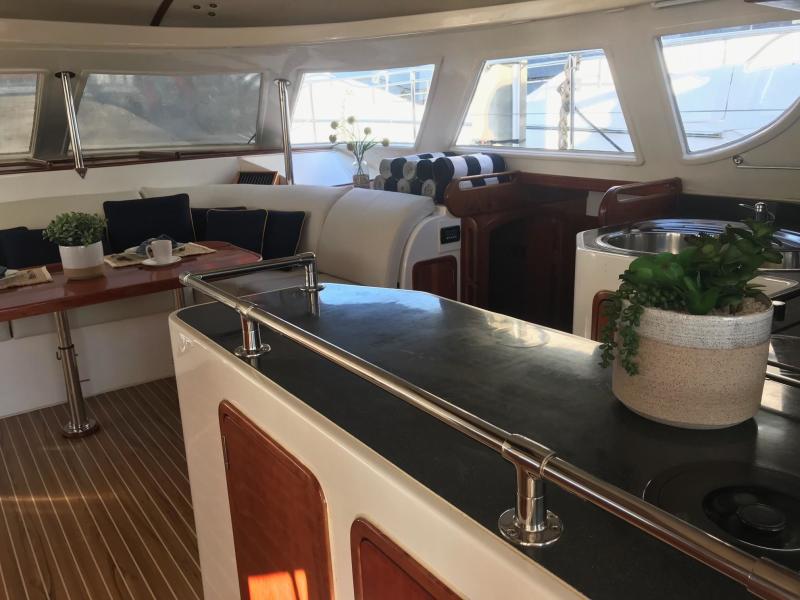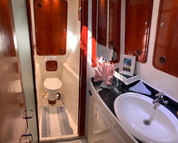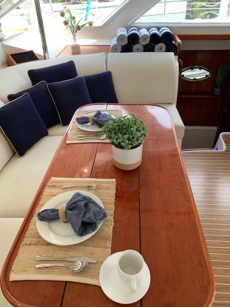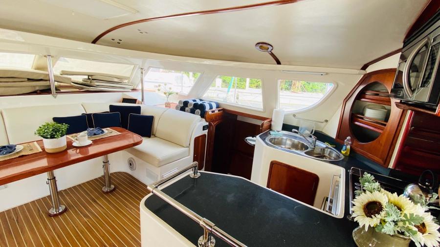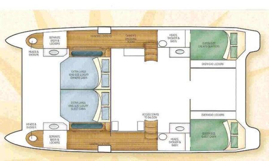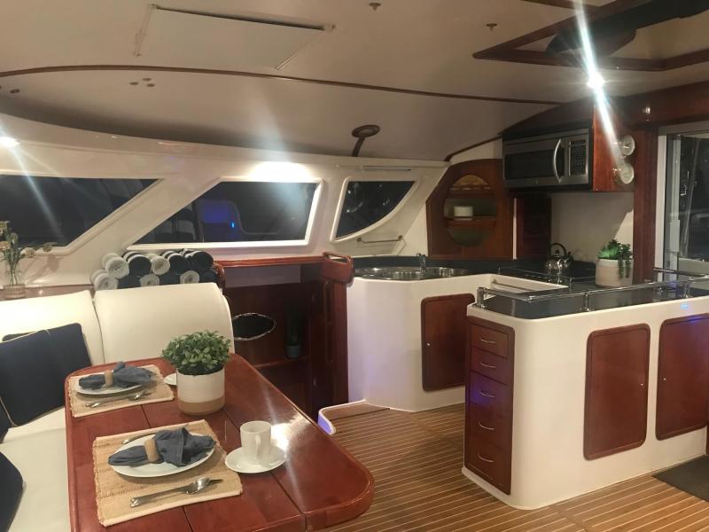 The perfect example of a well laid out, voluminous catamaran cruiser. TROPICAL BREEZE offers comfortable accommodations with a 4 Cabin/4 Head layout, Twin Yanmar Turbo Diesels @315 hp each. She has a beamy cockpit and foredeck for entertaining. Her sleek, semi displacement hull design assures a comfortable ride in a variety of sea conditions. The perfect weekend get away!