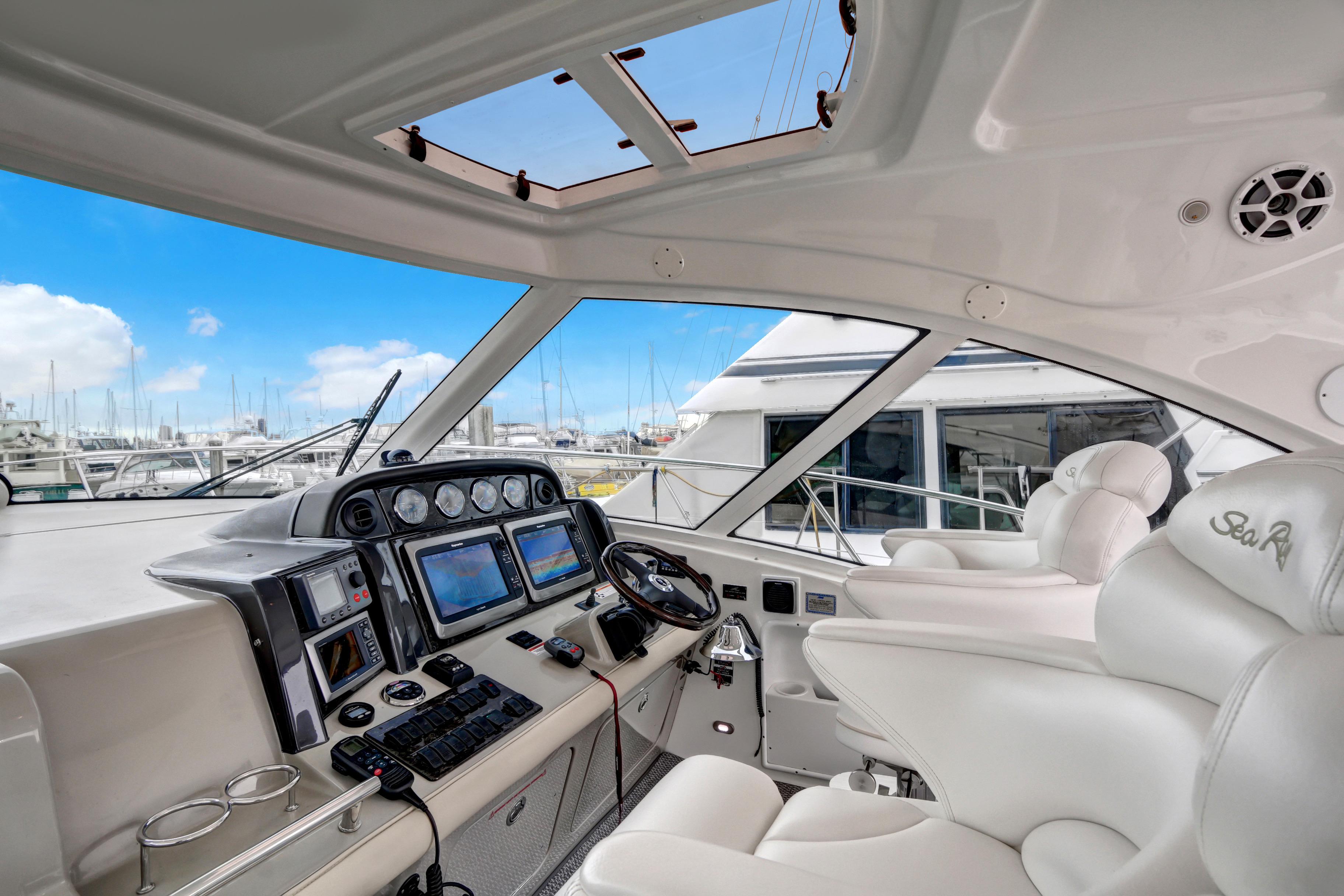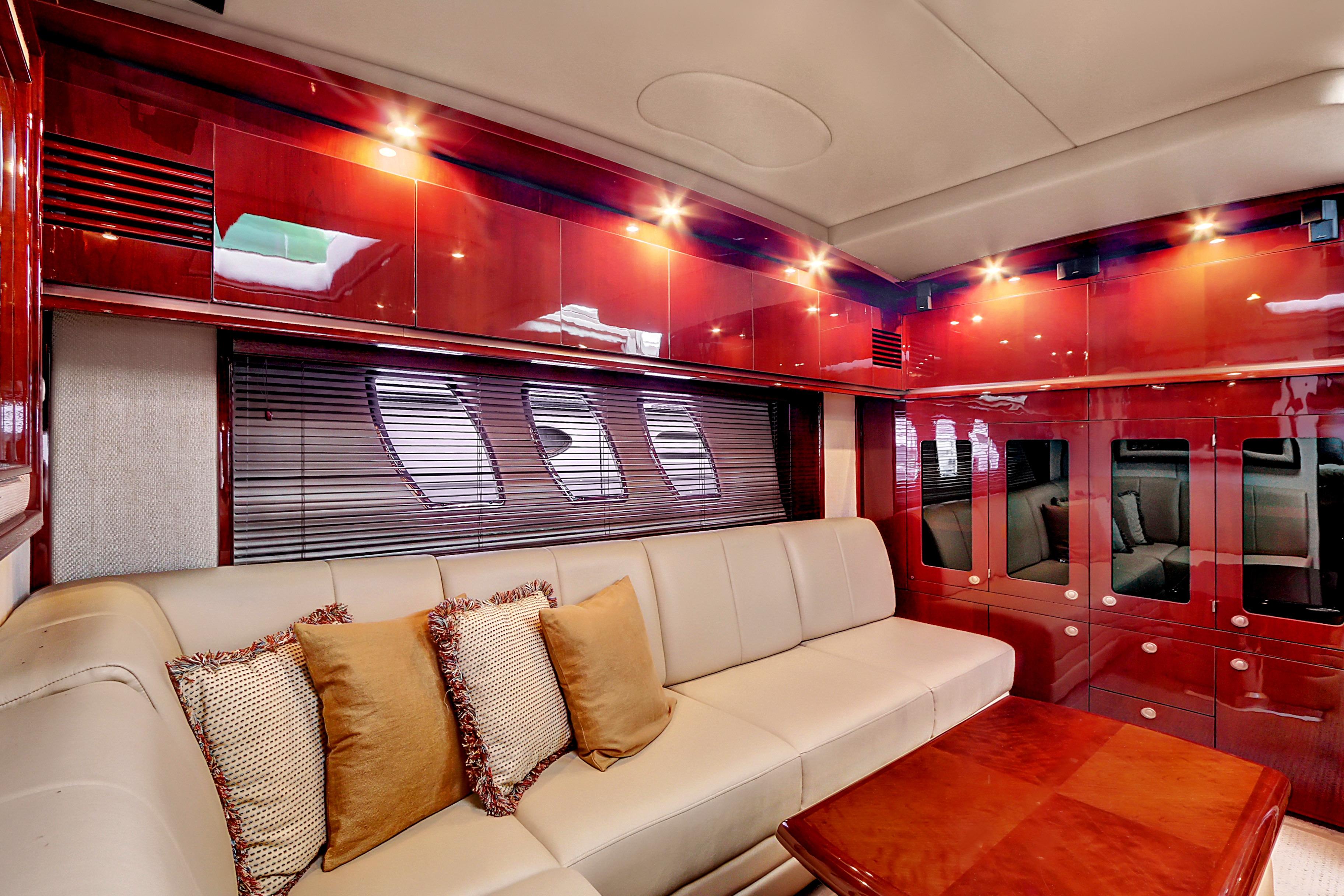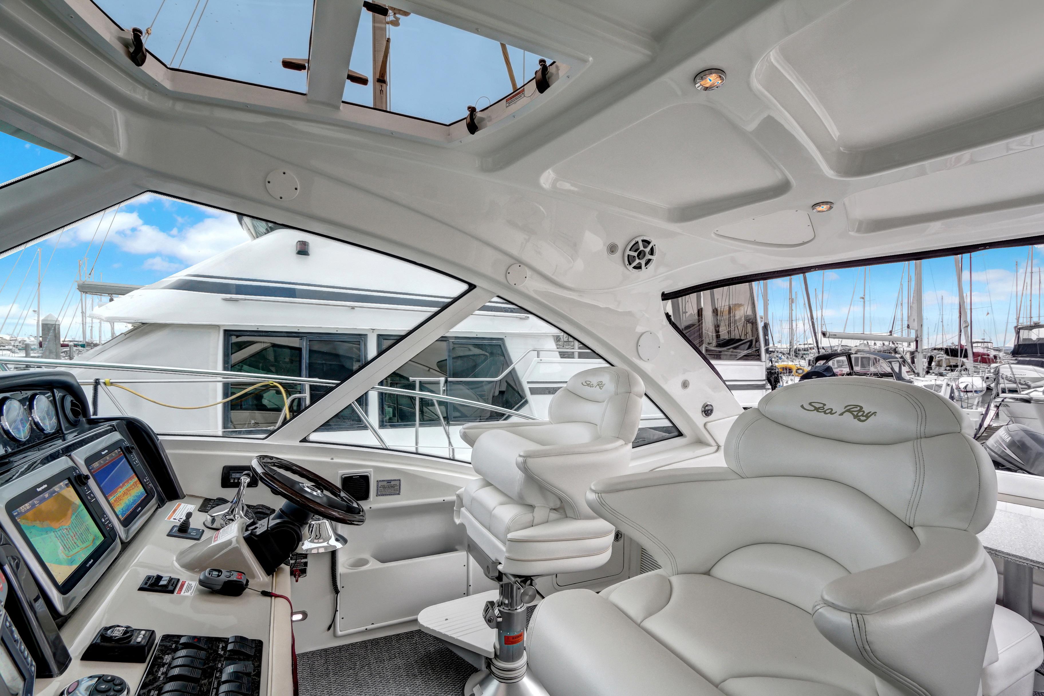 The gorgeous curves and aerodynamic profile of the 48 Sundancer are sure to attract attention. Outfitted with a unique, electric windshield vent system that allows for an unbroken line from deck to roof plus a sleek hardtop with two extra-large sunroof hatches, this ingeniously designed beauty is nothing short of inspired.
