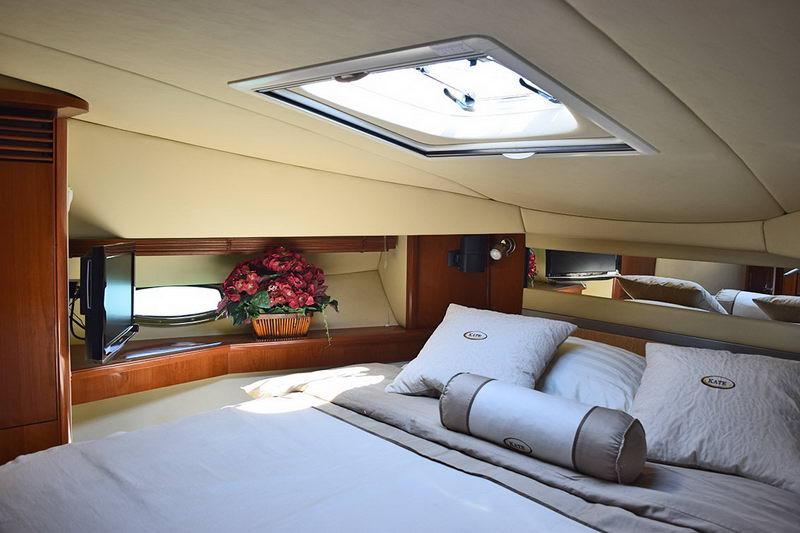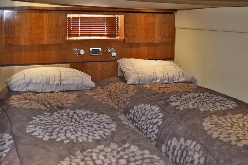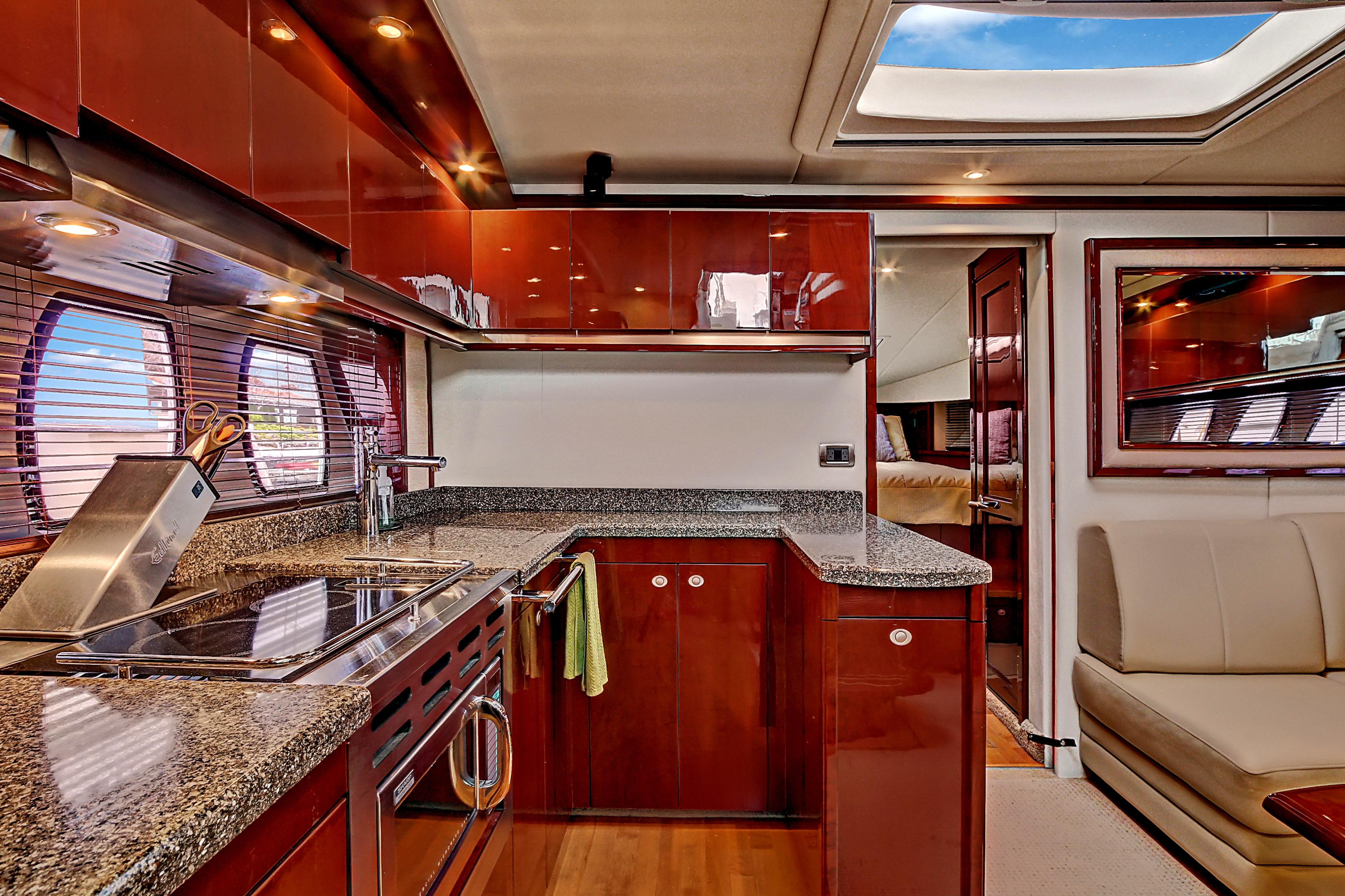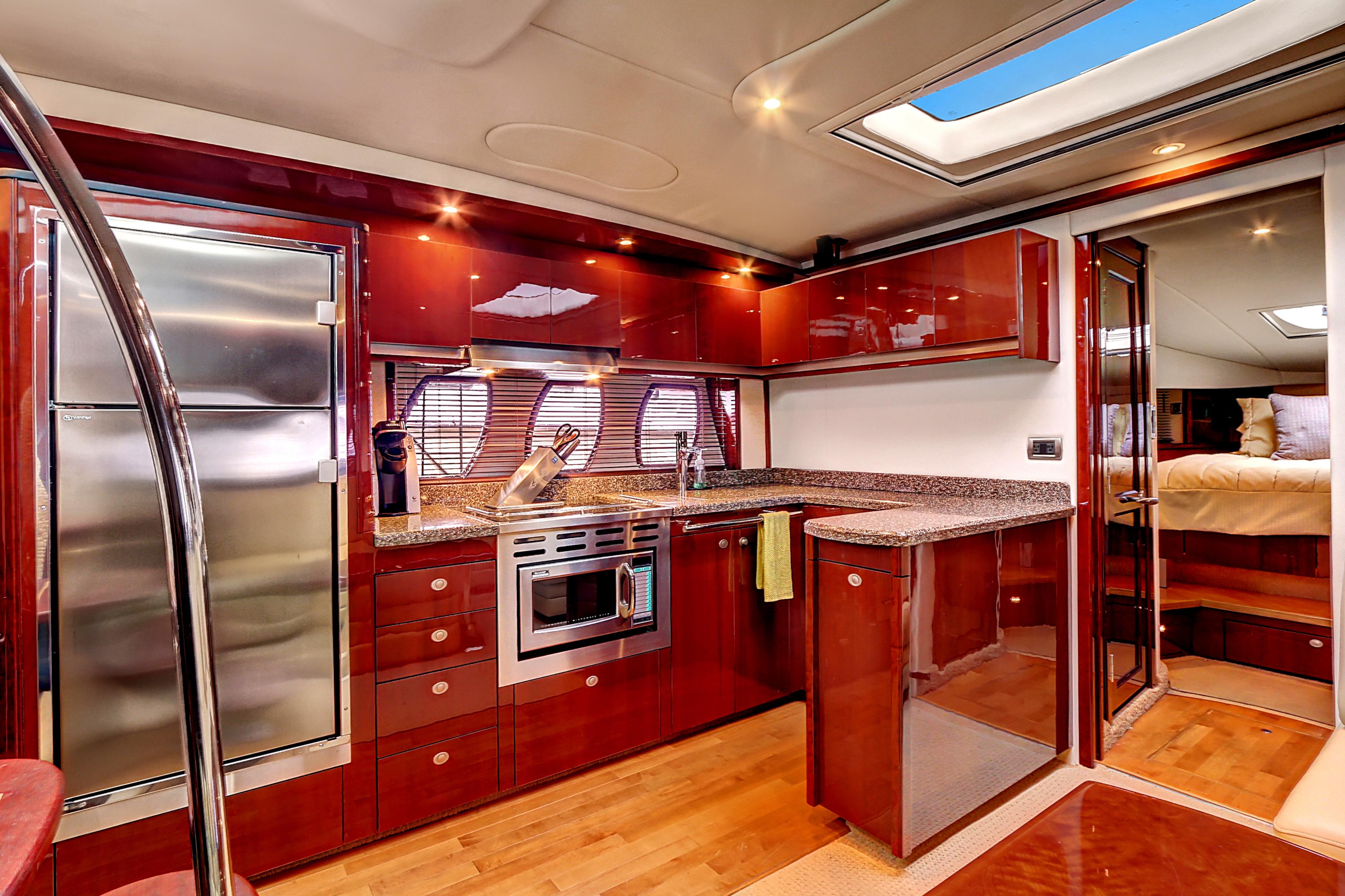 The gorgeous curves and aerodynamic profile of the 48 Sundancer are sure to attract attention. Outfitted with a unique, electric windshield vent system that allows for an unbroken line from deck to roof plus a sleek hardtop with two extra-large sunroof hatches, this ingeniously designed beauty is nothing short of inspired.