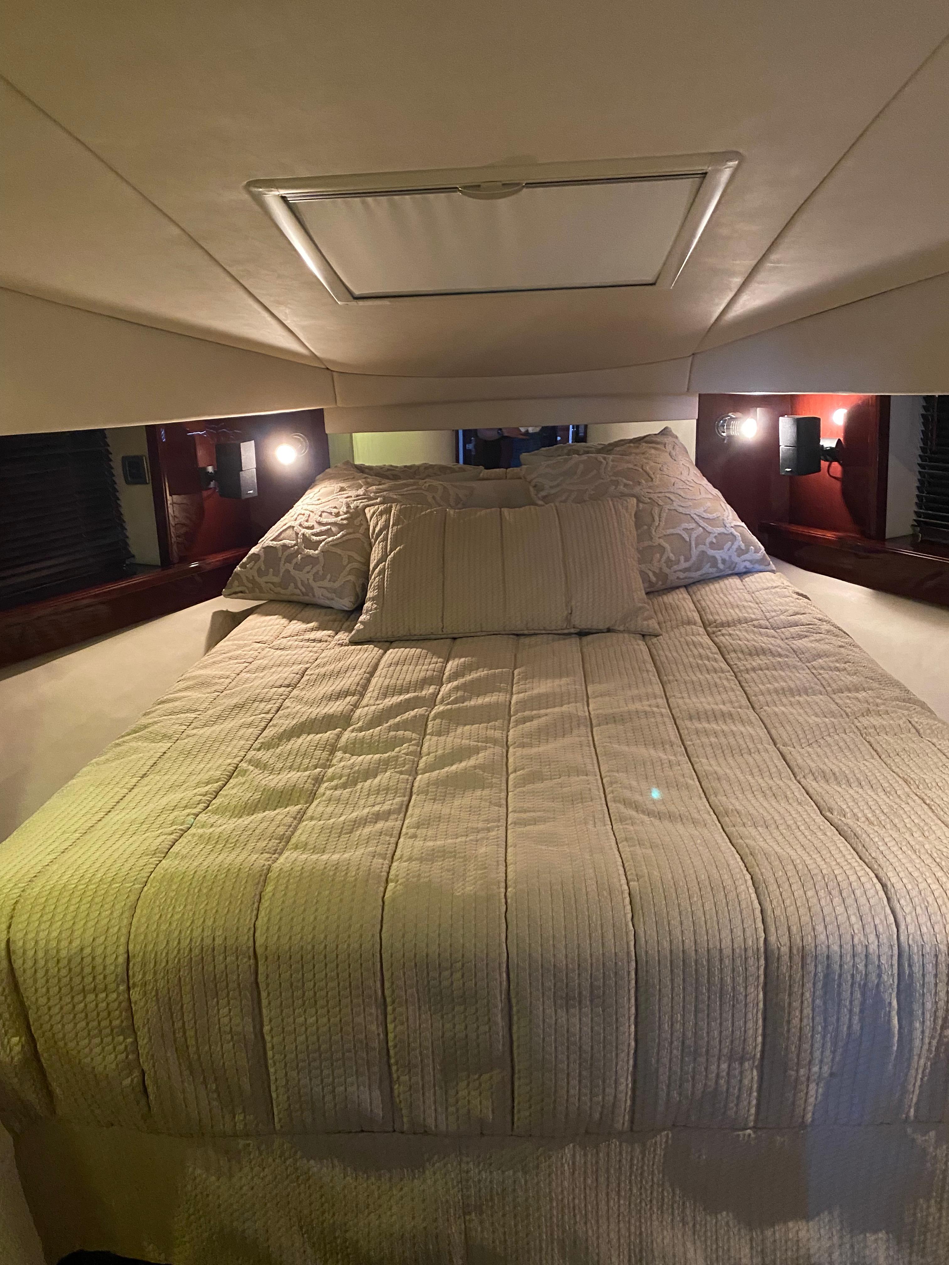 The gorgeous curves and aerodynamic profile of the 48 Sundancer are sure to attract attention. Outfitted with a unique, electric windshield vent system that allows for an unbroken line from deck to roof plus a sleek hardtop with two extra-large sunroof hatches, this ingeniously designed beauty is nothing short of inspired. With a master, a guest bedroom, full kitchen and 2 baths this boat is great for family. Recently done bottom paint sandblasting previous ones, new zincs and propel seals. Oil change and filters done on engines and generator at 680hrs. New 8.6 JL outdoor speakers conveniently positioned and 6 channels Fusion amplifier. New LED color changing cabin and hull lights recently installed. Meticulously maintained and cared. This boat will not last !!! Give me a call today and schedule an appointment!!!