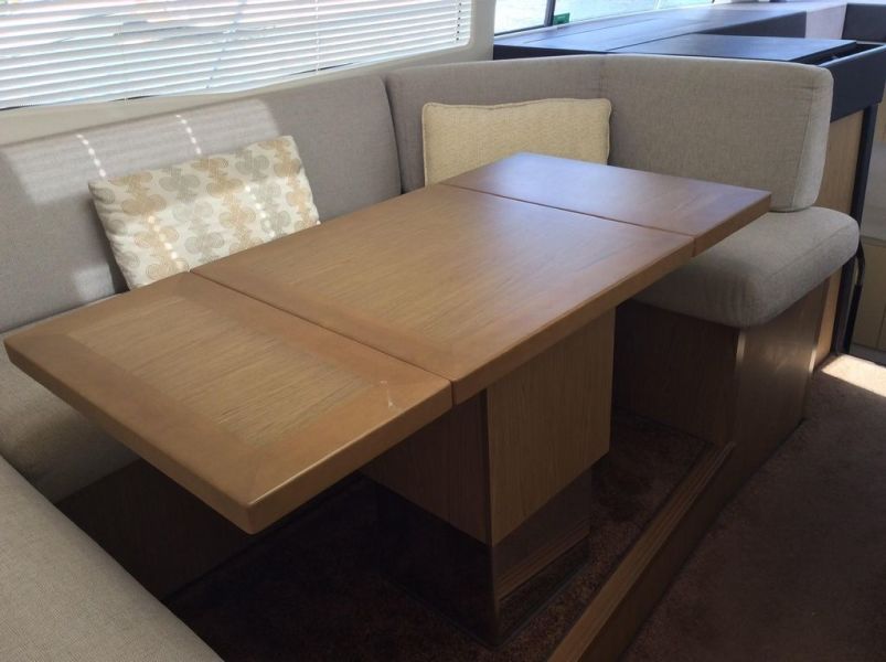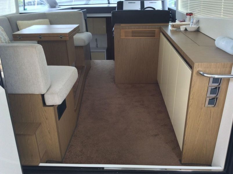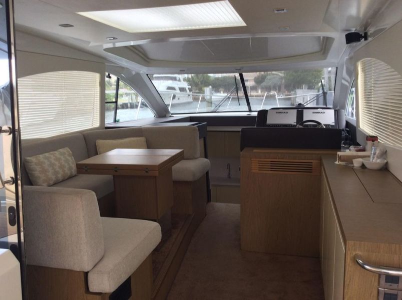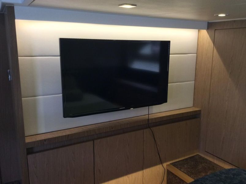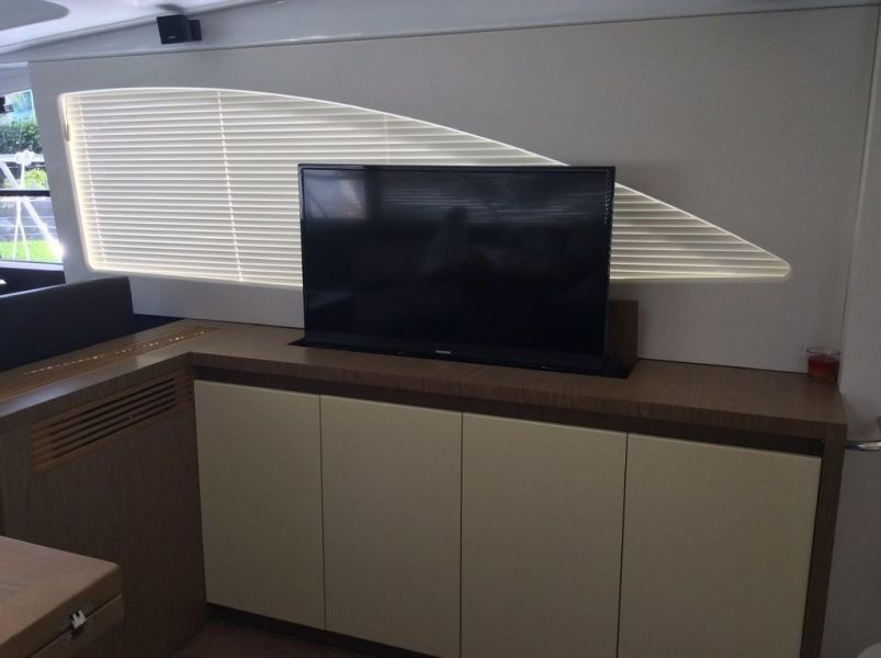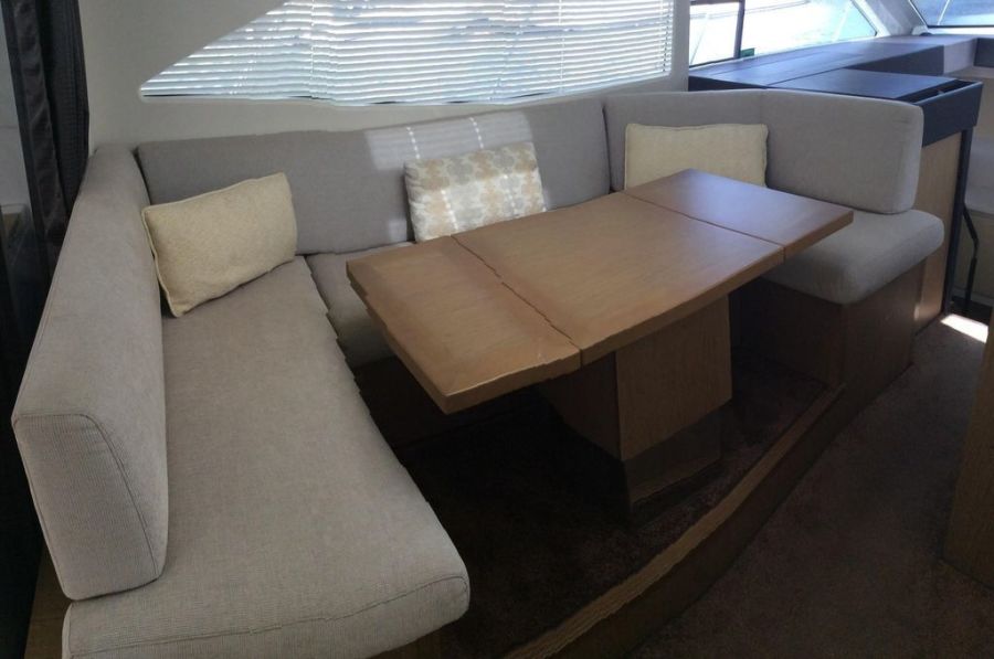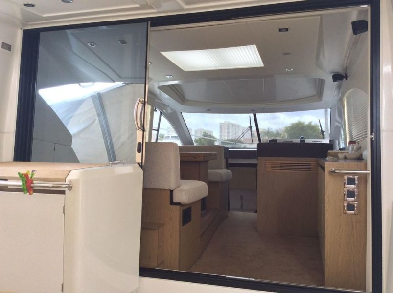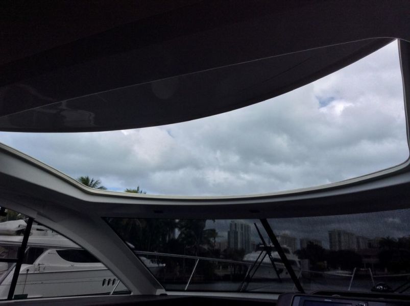 Her 3 Stateroom layout boasts a full beam, aft master as well as one of the most functional and spacious Galleys on a 50' vessel. Above deck is a well appointed, enclosed salon with upgraded spec AC for the tropical climate of Florida, a rise and fall TV, ice maker, plus a retractable sun-roof.