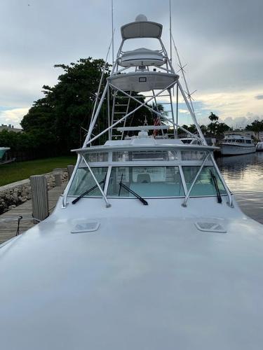 The Viking 50 Open is a fully loaded fish killing machine! Complete with a very comfortable 16'4" beam, 140 sq.ft cockpit, great sized tuna door, hydraulic Outriggers, custom tackle center, Eskimo ice machine, 2 deck fish boxes, BIG live well and a superior tower.