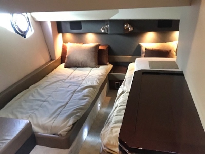 Absolutely beautiful 3 Stateroom/2 head Sport Fly Bridge features an ensuite master, exquisite Up Galley & Salon, spacious foredeck w/sunpad & aft deck w/wet bar and a voluminous fly bridge for open air cruising and entertaining.