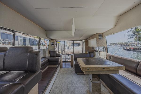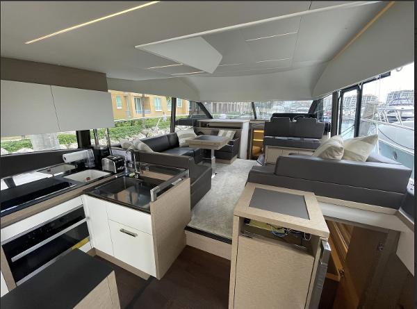 This model has inherited the strengths of her predecessor, yet she also features her own innovations. The true PRESTIGE spirit can be felt in this ingenious, top-of-the-line model. In a pure, dynamic style, the PRESTIGE 520 offers multiple zones for relaxing in comfort. First, we have the XXL Flybridge, unique on a motor yacht of 52 feet! Life on board is easy, enhanced by numerous clever details. Conducive to relaxation, the L-shaped saloon includes an immense integrated storage locker. Intensely bright, the inviting saloon evokes a sense of well-being. Facing sofas and a modular cockpit bench seat, which can pivot to face the saloon, create the perfect space for entertaining. Extremely large windows contribute to the soft, warm atmosphere on the interior, while offering unimpeded visibility.