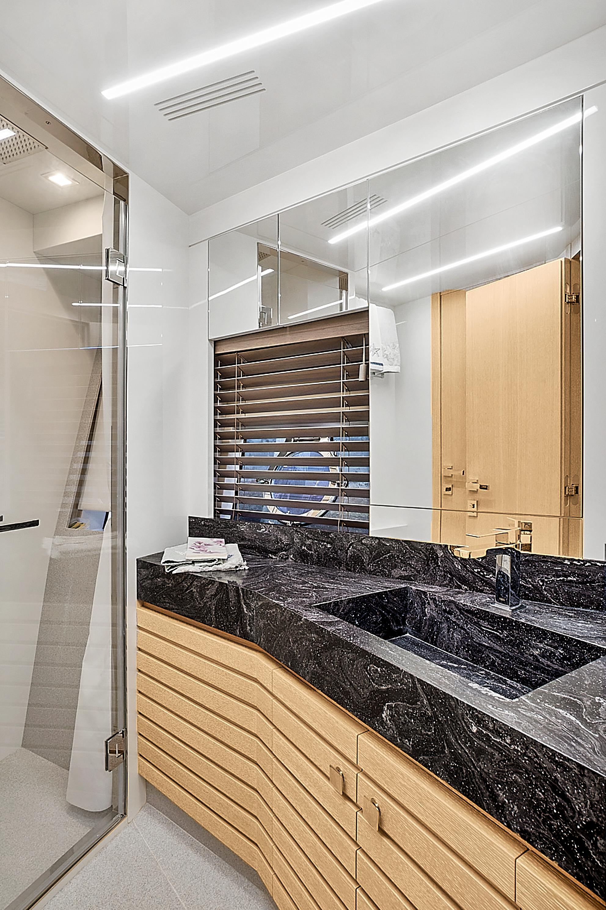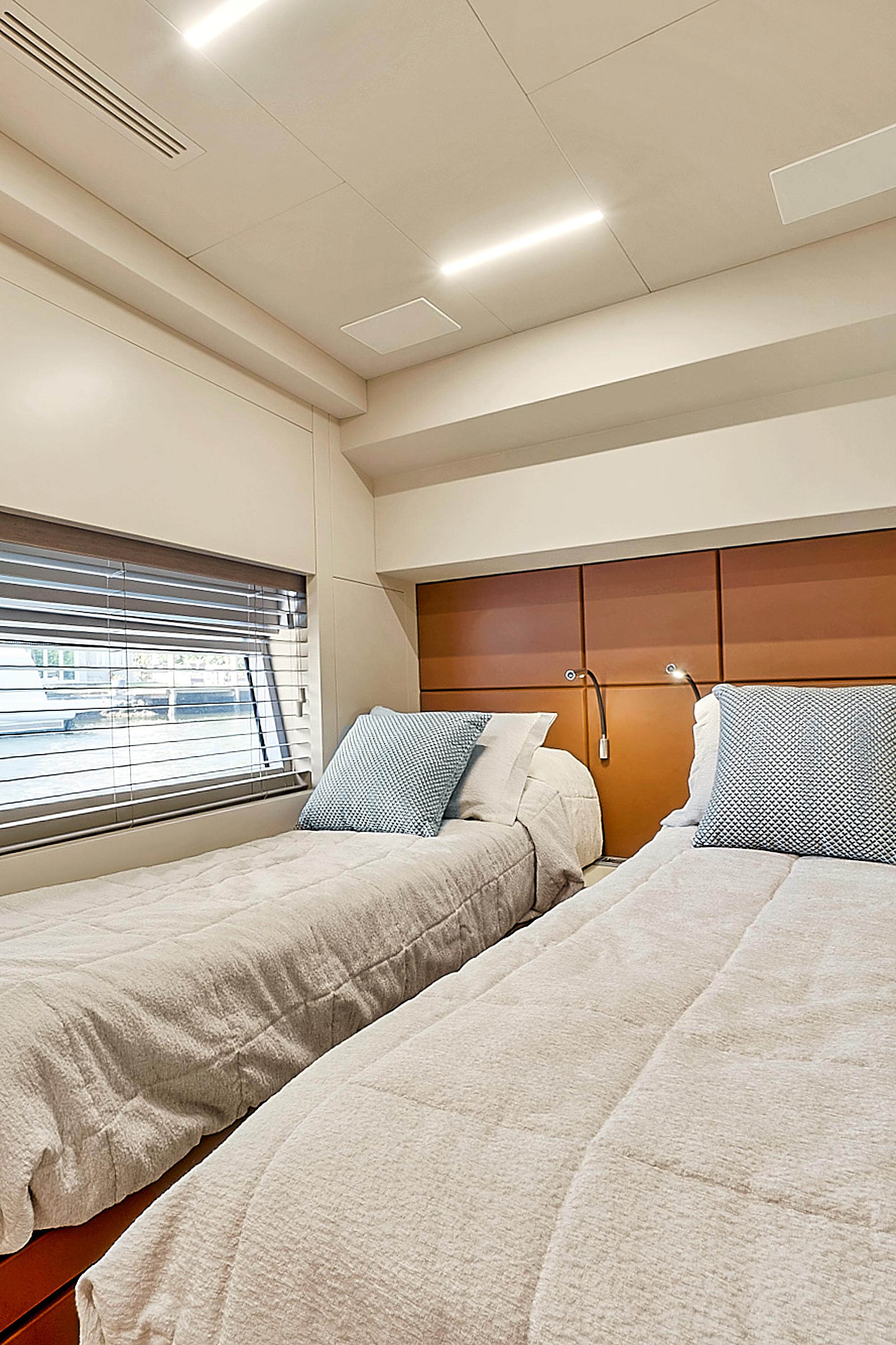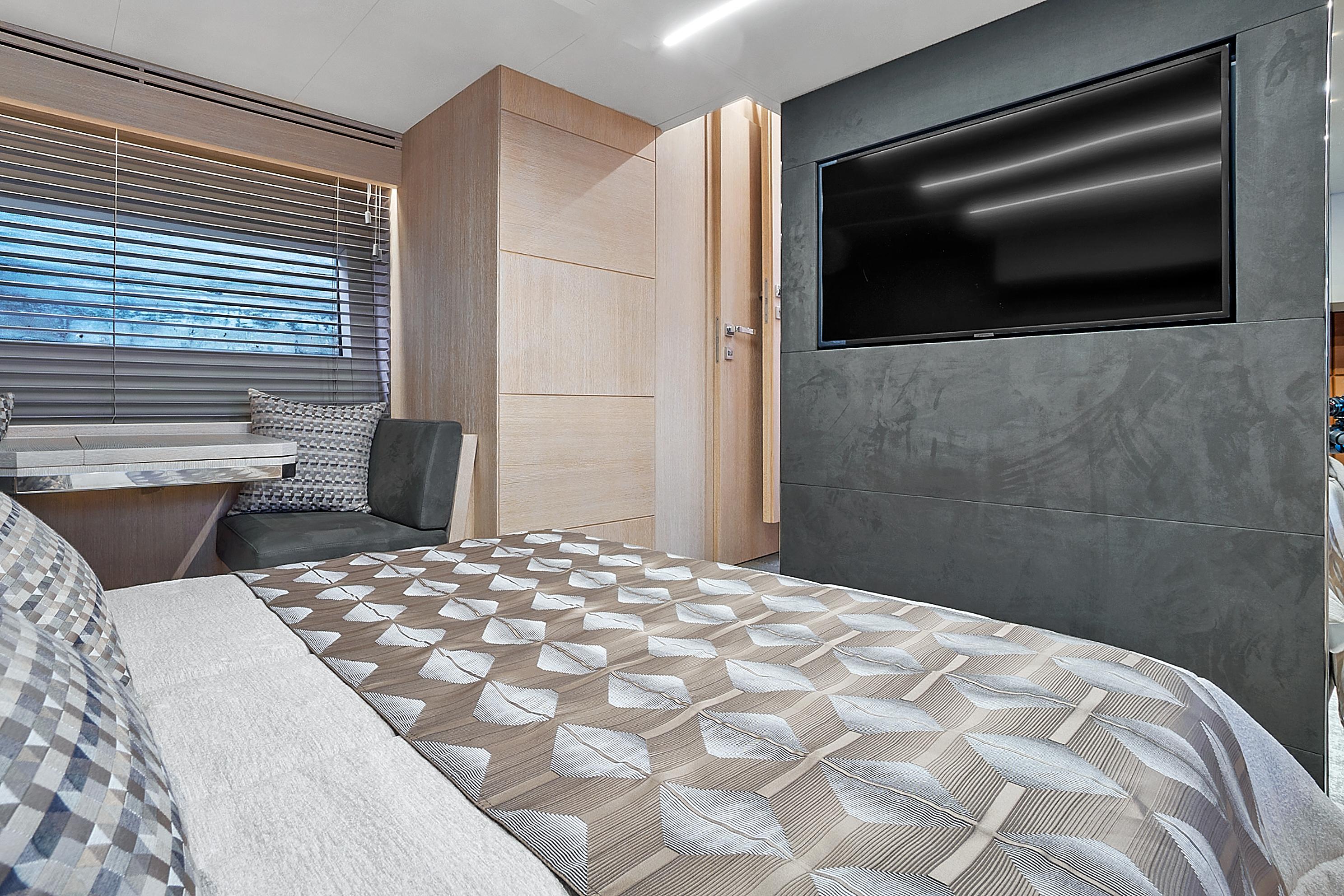 Natural light pours into the salon and cabins through large side windows, which add to the sporty, but sleek profile. Performance meets comfort and casual elegance in this Astondoa mid-range yacht.