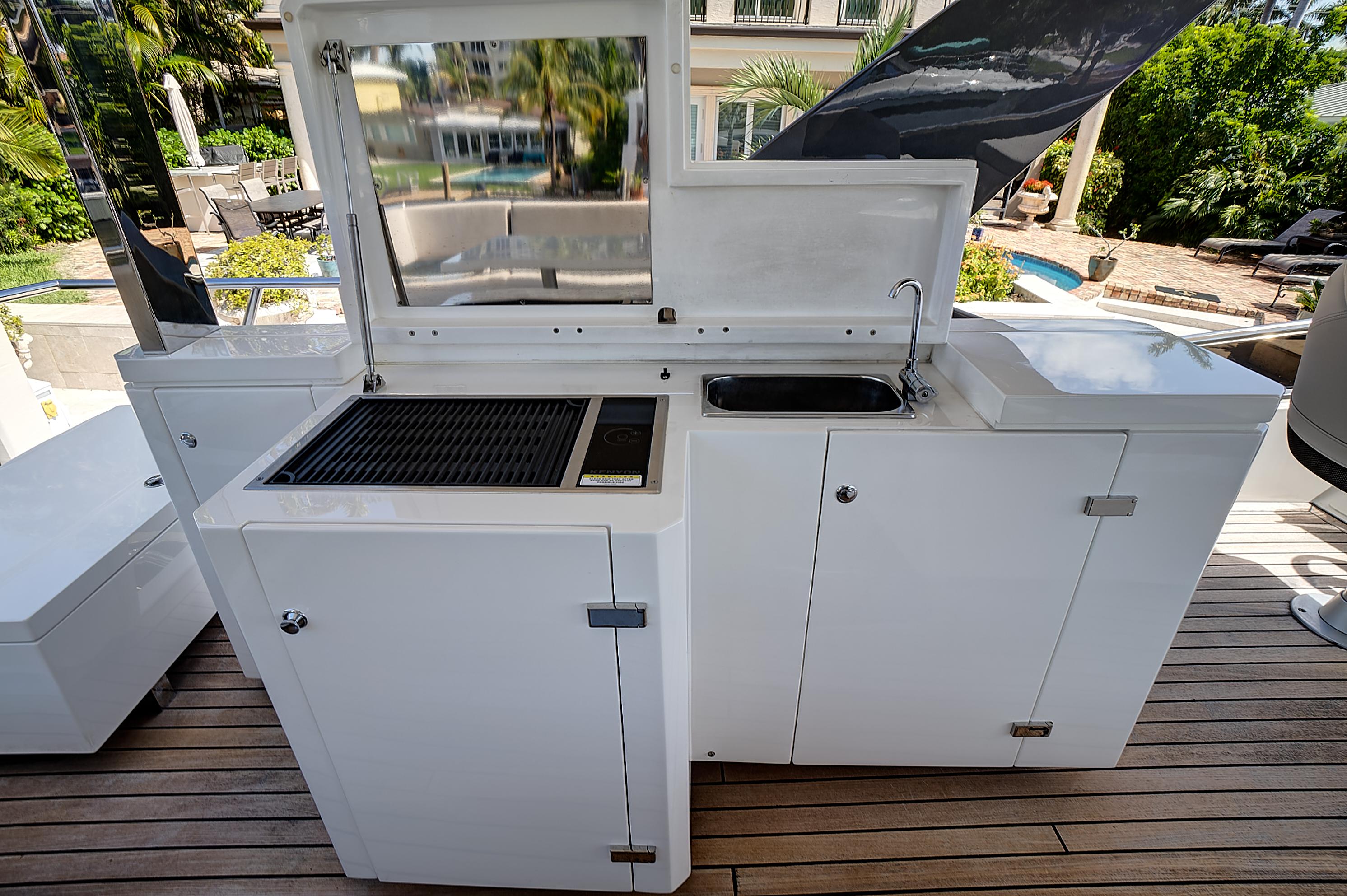 - Fly-Bridge BBQ, Sink, & Fridge