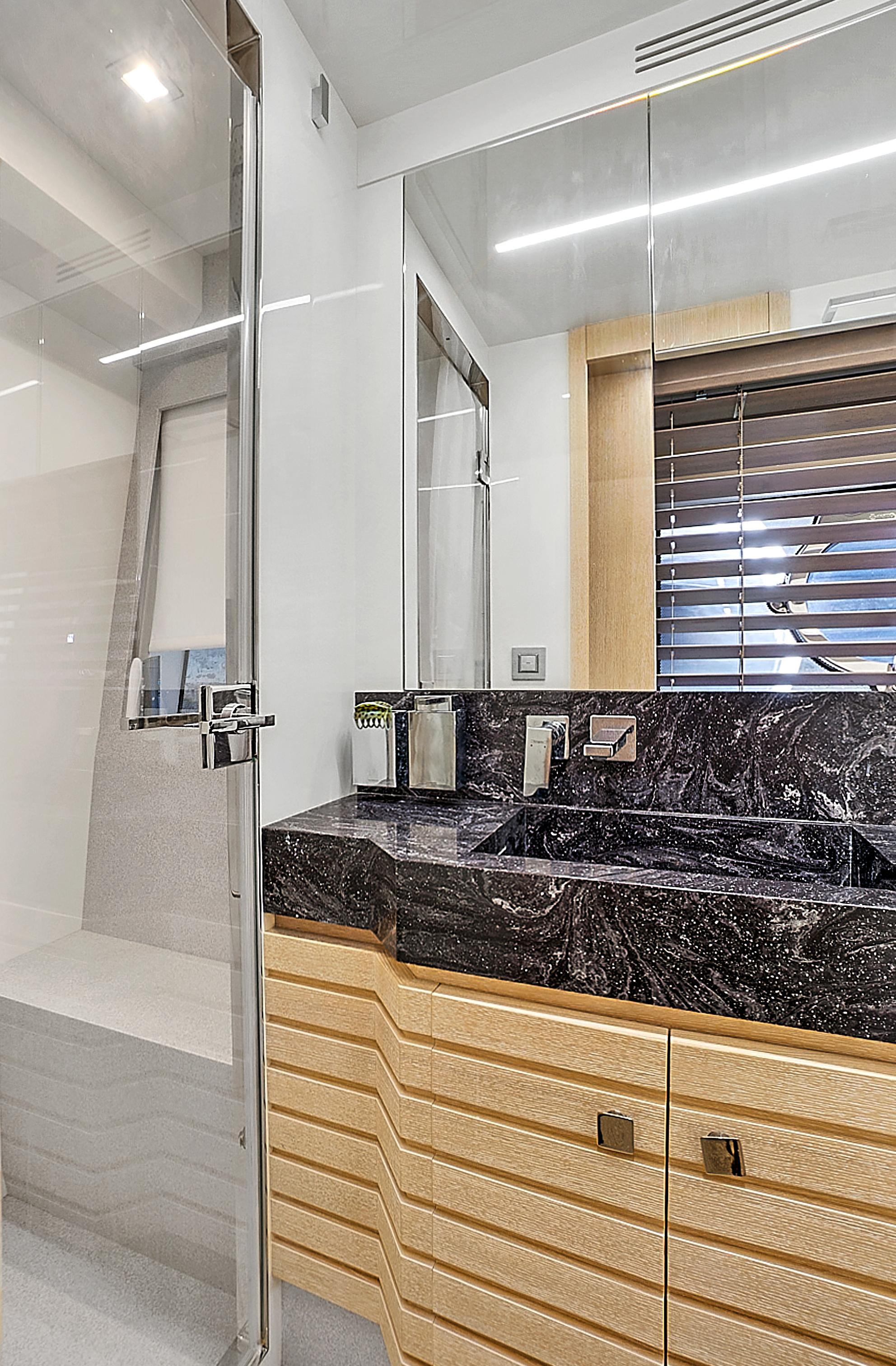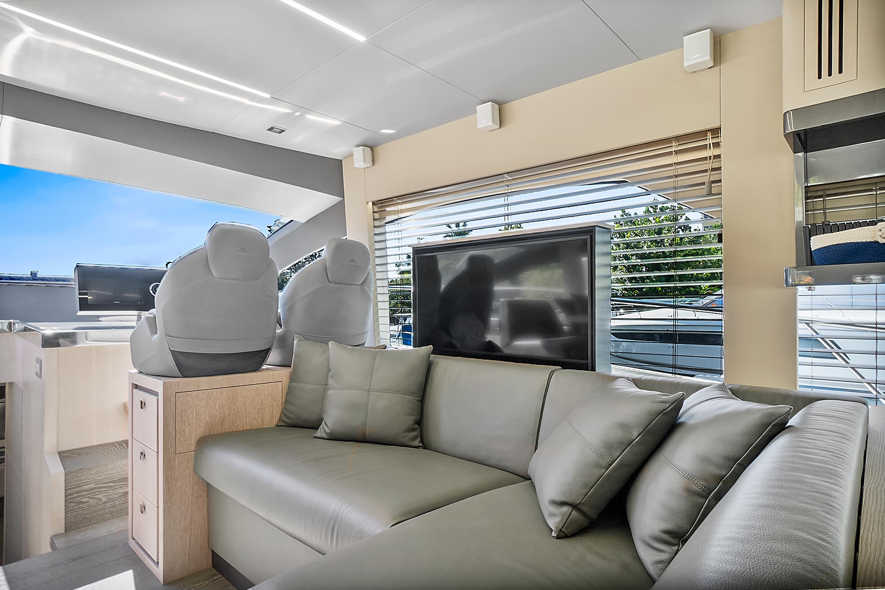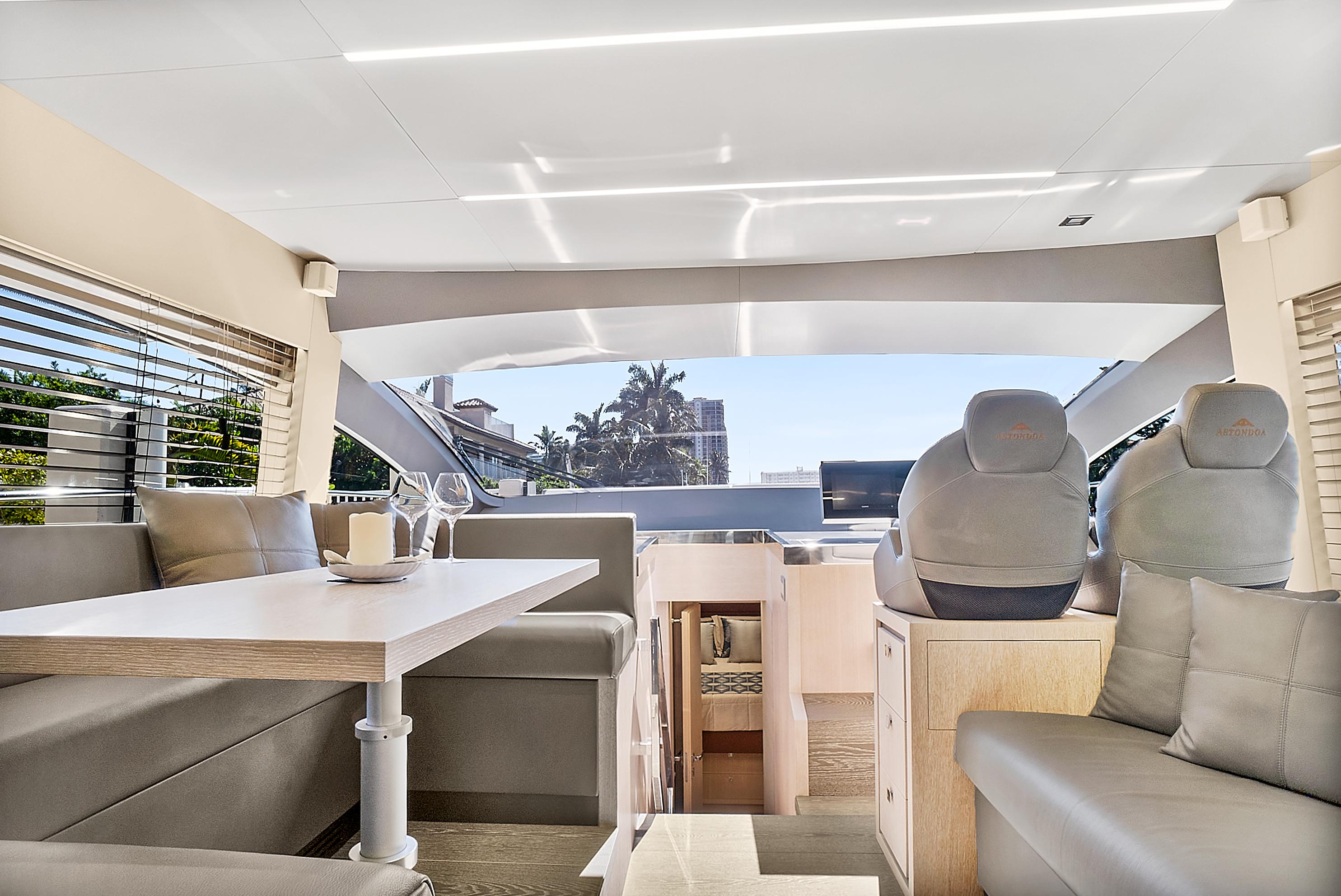 Natural light pours into the salon and cabins through large side windows, which add to the sporty, but sleek profile. Performance meets comfort and casual elegance in this Astondoa mid-range yacht.