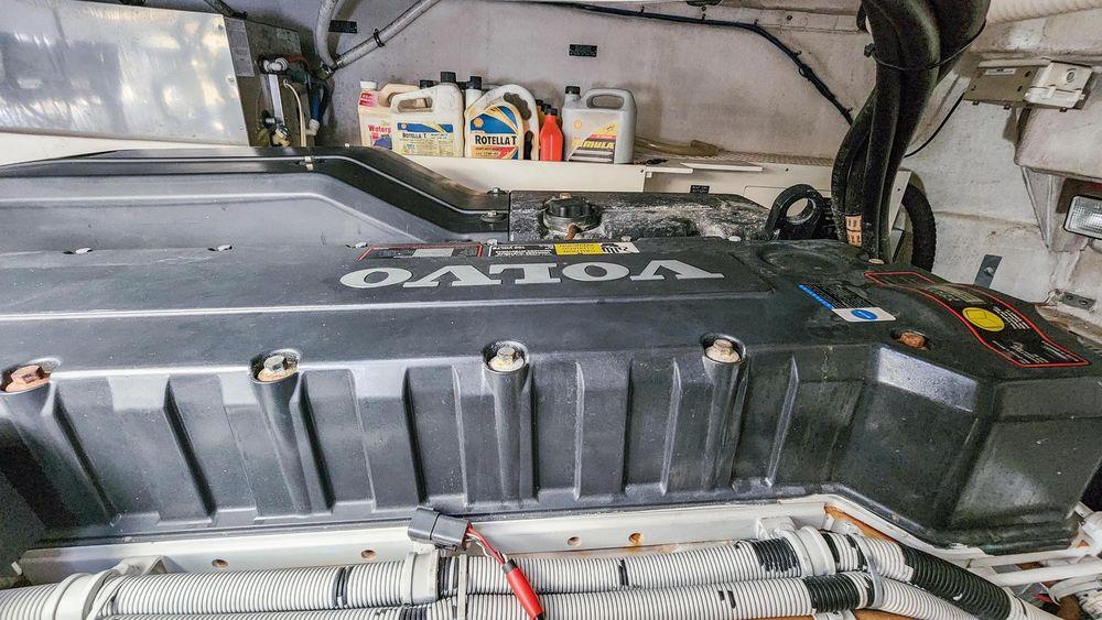 In the cockpit, you have ample seating and entertaining areas, and this boat will outrun the pack with its 715hp Volvo Package.