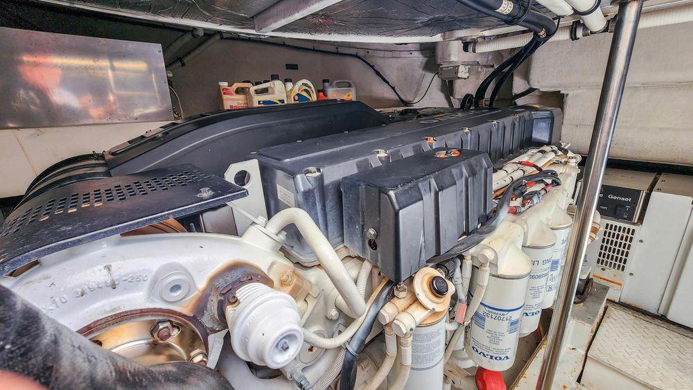 In the cockpit, you have ample seating and entertaining areas, and this boat will outrun the pack with its 715hp Volvo Package.