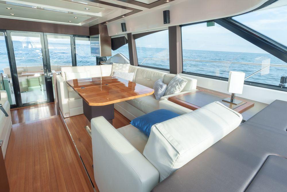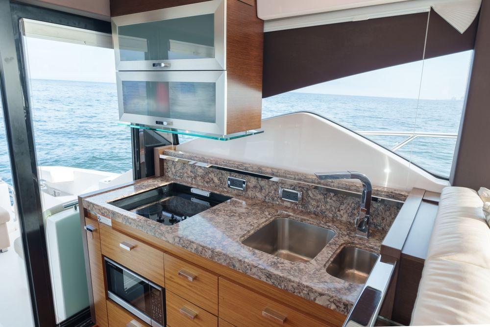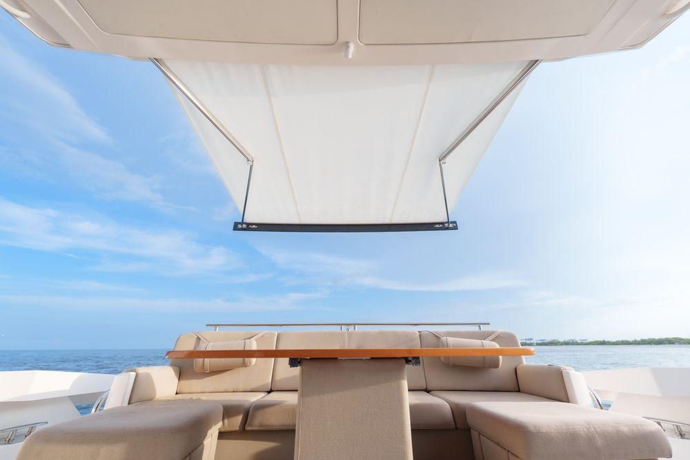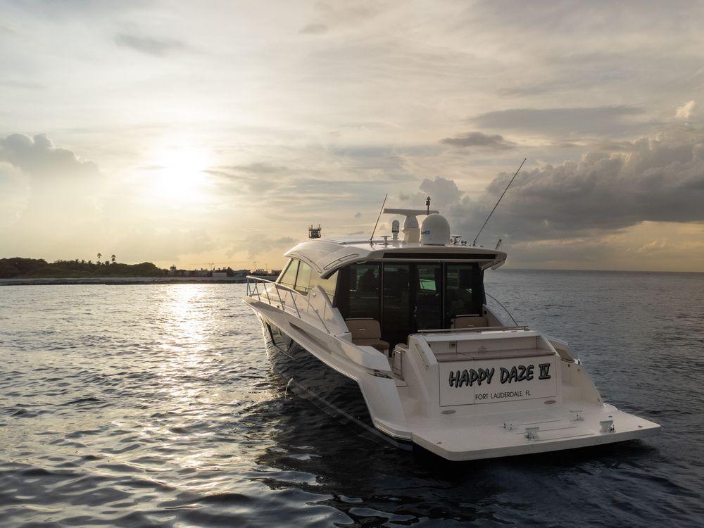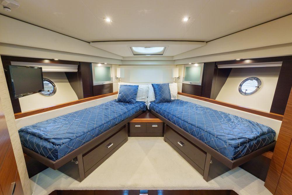 This beautiful Tiara is equipped with top of the line technology for it's time and currently has kept up to date with all the latest electronics and mechanical features. She is a coupe-style Tiara featuring comfortability while cruising at over 35 knots. Entertainment is natural on this yacht as it's galley blends effortlessly into the cockpit which comes with a convenient electronic retractable sunshade to enjoy the summer evenings on the water. The fluidity of the boat seamlessly combines the cockpit, galley, salon, and helm all into one relaxing setting. The Master suite comes geared with a full-sized king bed, private bathroom, and beam to beam windows. The Master also comes with a combo washer and dryer, two large closets and an independent AC unit control. The VIP suite has a spacious bathroom connected to its suite, while featuring a unique bedding option that can convert the queen-sized bed to two separate twin beds, allowing to accommodate all guests that arrive onboard. On the port side, it has a bunk stateroom with shared television. Both the VIP and twin staterooms have accordion-styled doors which allows more space to walk freely between rooms.
