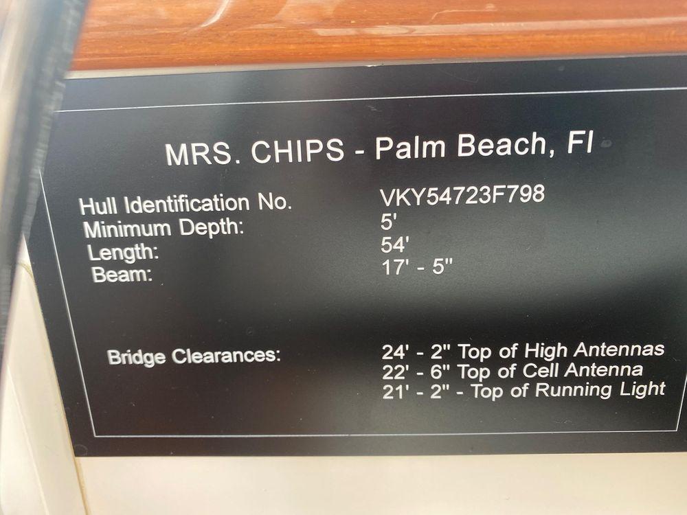 There are lots of yachts available on our market that are definitely sub standard and especially when compared to MRS. CHIPS. MRS. CHIPS is so far beyond in both condition and equipment than any yacht currently on the market. You will just have to see her to believe her. Words and photographs are just too insufficient to represent her in all of her splendor. Fully captain maintained with a hands on owner has brought MRS. CHIPS to above a 5 Star level. She has redundant safety systems and all services are current. Walking up to MRS CHIPS you will not be able to decide what age she is. Her graceful lines which were taken from a sportfish yacht hull were so far ahead of the curve when she was launched. She has a lovely low profile that is pleasing to the eye, no matter if your taste leans towards a Euro look or a classic look. Her knowledgeable owner has purchased a larger yacht due to a new crop of post Covid grand kids. He has been a 2 yacht owner for over 5 months and now has made the most difficult decision to put his pride and joy on the market. MRS CHIPS is not for everyone as most people will not understand the value of her upgrades and maintenance program. If you are a connoisseur of unique, beautiful, and functional yachts, then take the time to read her listing( which does NOT convey all of her upgrades) and make an appointment for a personal inspection or a virtual visit walkthrough. She is located in very accessible Palm Beach, Florida and is ready for an inspection with very little notice.
