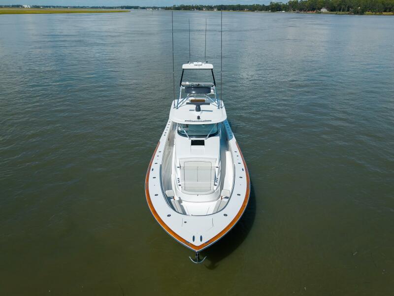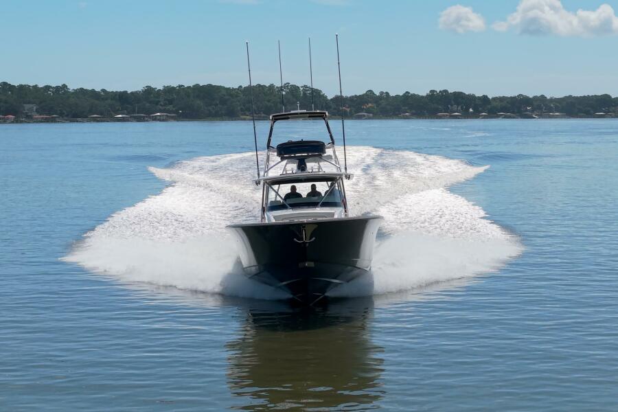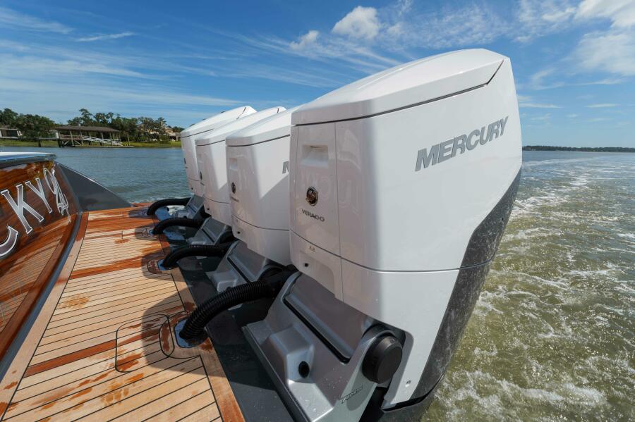 - Quad White V12 600 HP Mercury engines, with custom shark grey accent paint