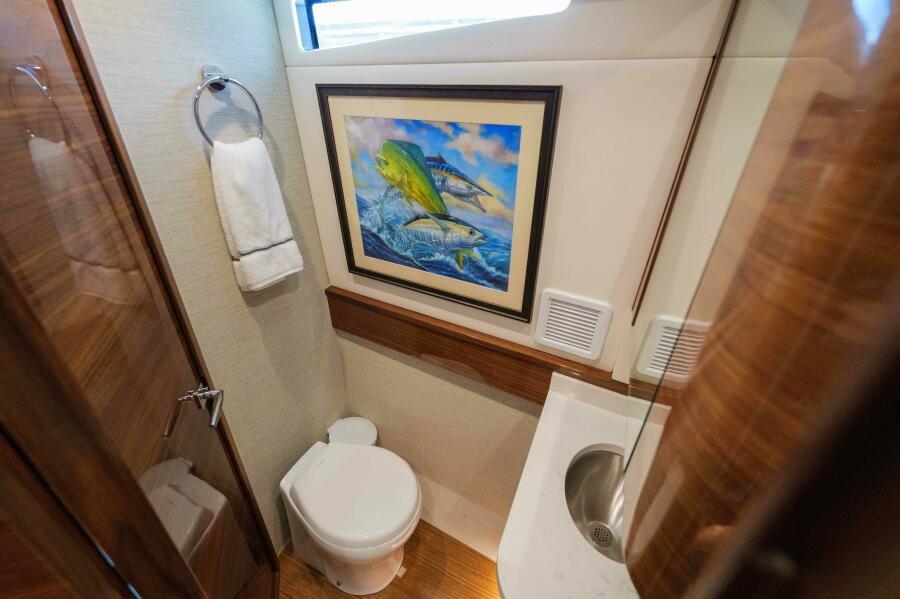 - Electric fresh water head with Y value to a 12-gallon tank or overboard