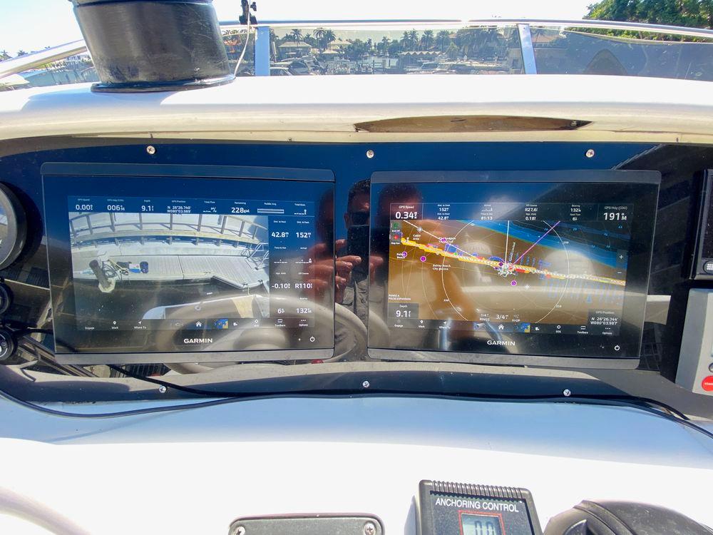 - New Garmin 8612 chart plotters (2 on flybridge, 2 at main helm)