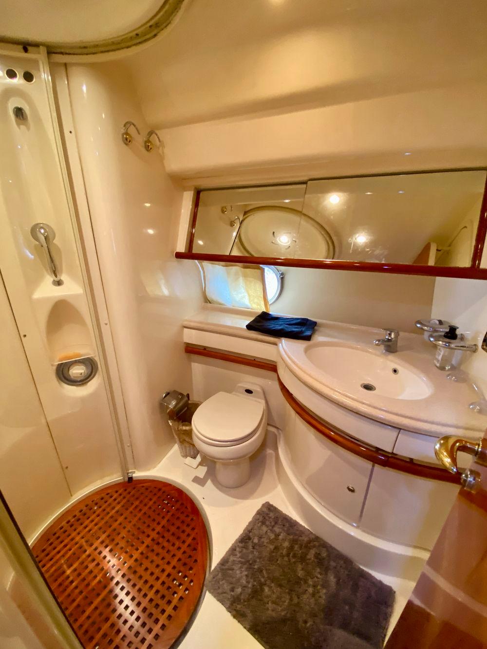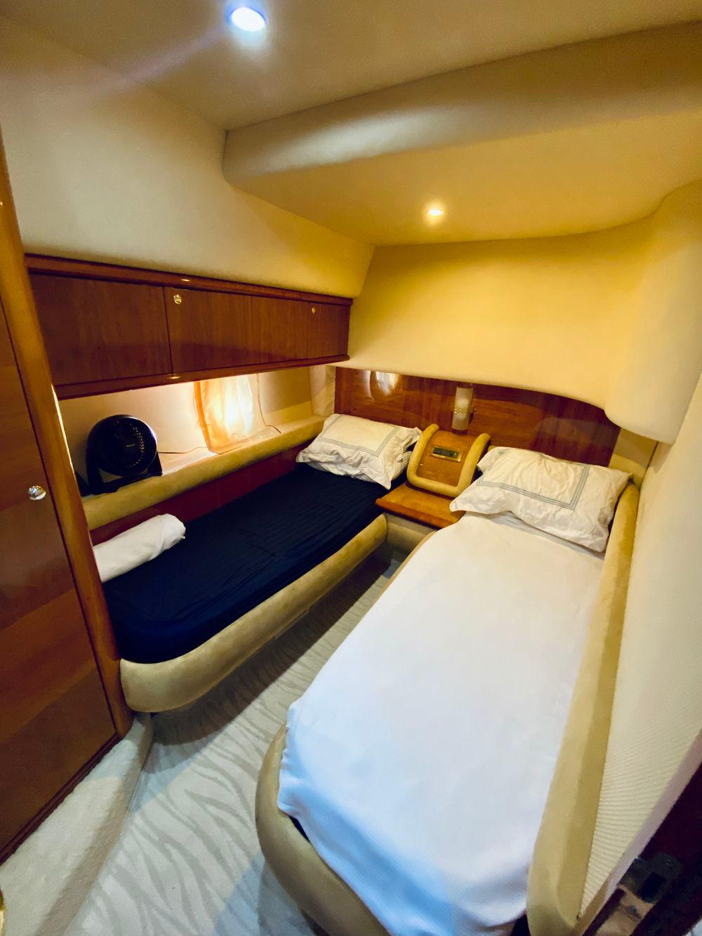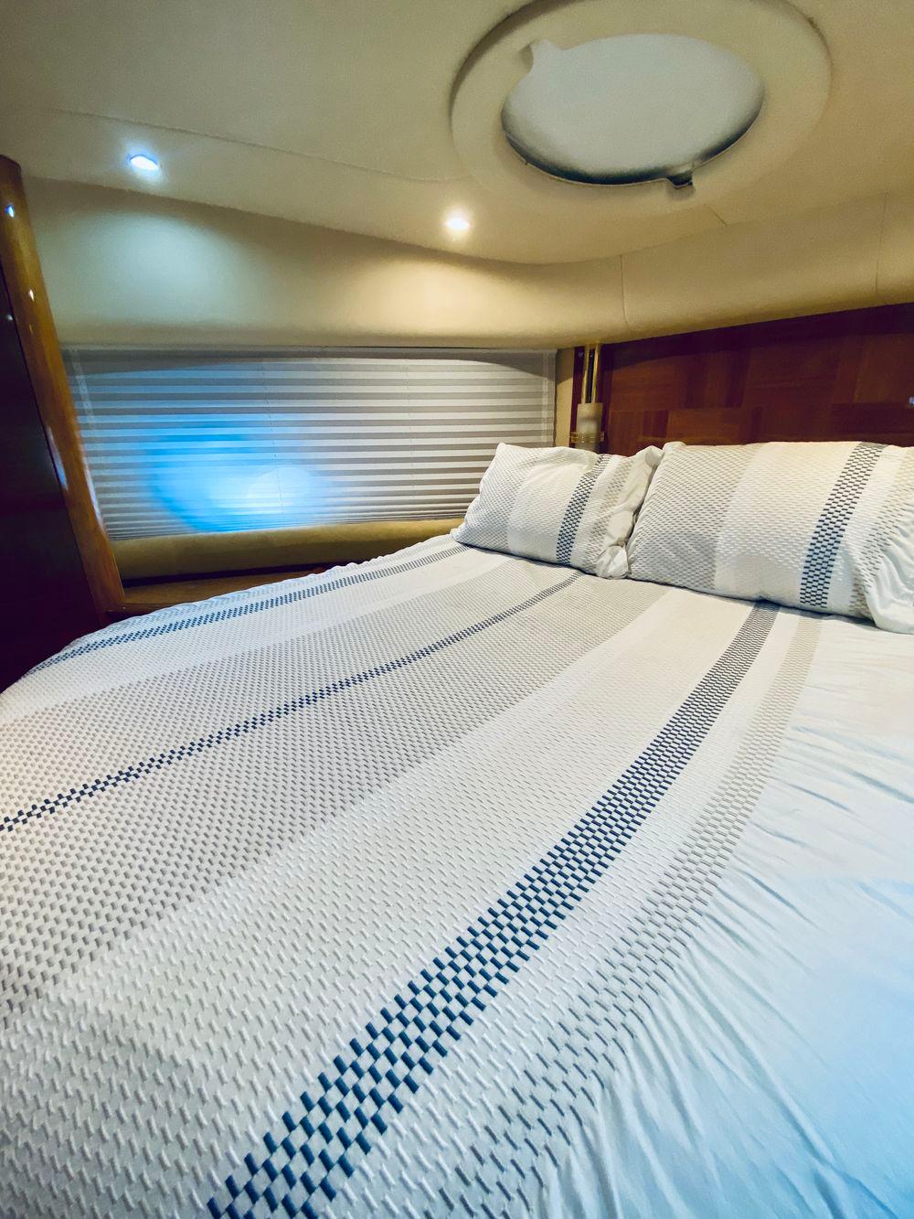- 3/2 layout + captain/crew cabin with air conditioning, head, microwave, and fridge.